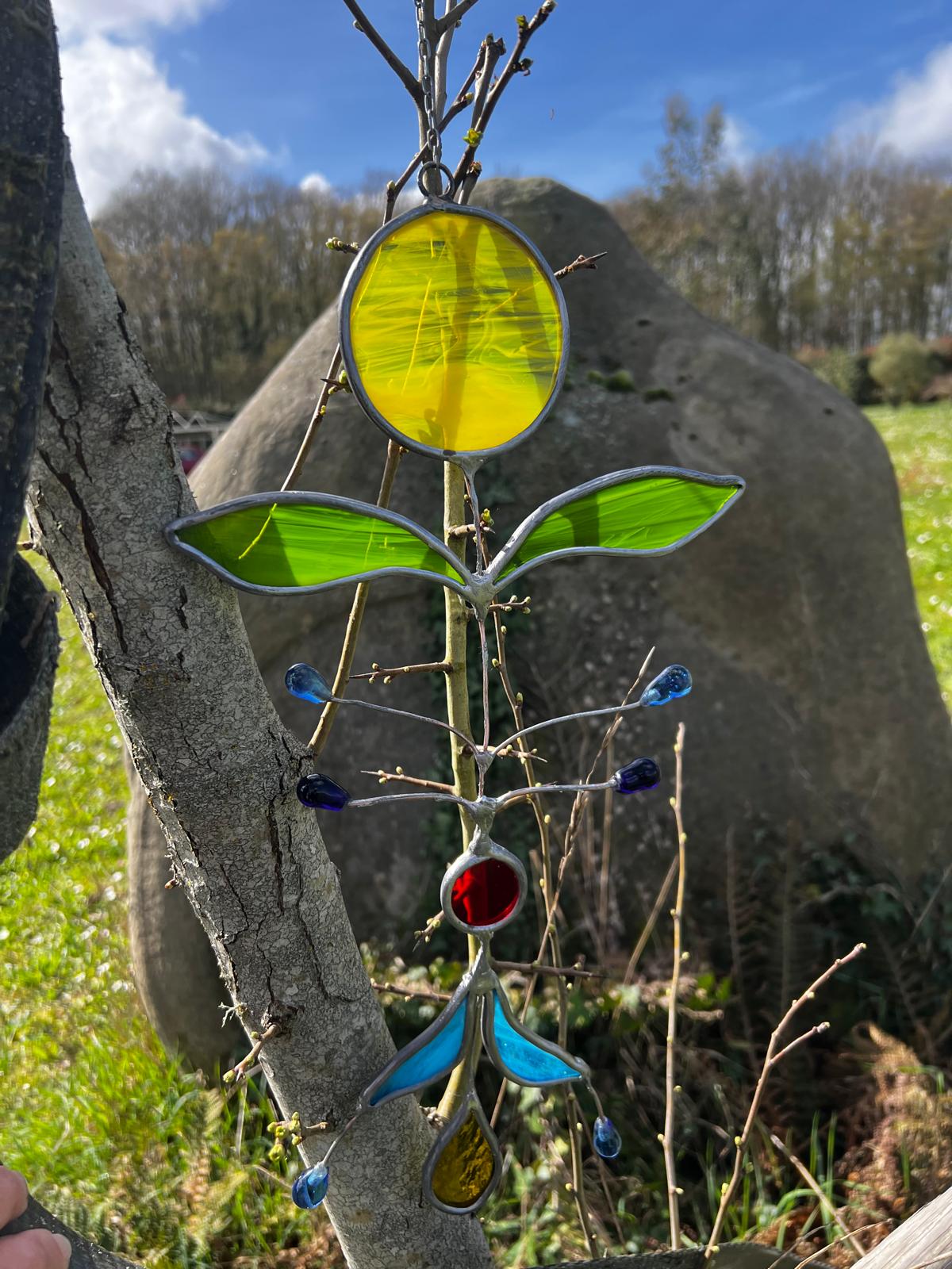 En dehors du vitrail, des fleurs, des bijoux ou des figurines, je créé également des attrapes-soleil. Les attrapes-soleil apportent une touche de magie et de poésie à nos intérieurs. Je crée également des veilleuses bébé enfant en verre fusionné et à déclenchement automatique dans le noir.