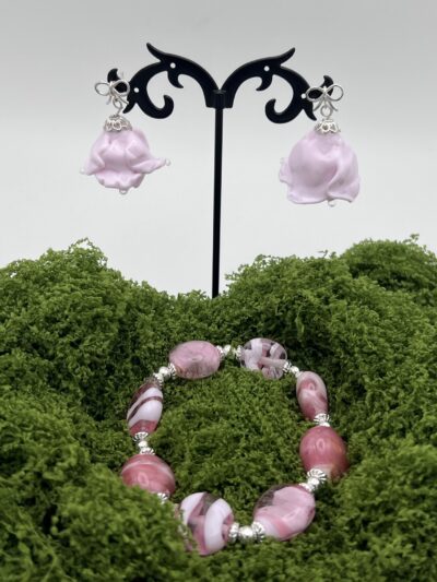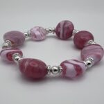 Un bracelet perle fabriqué à la main et sous la flamme de mon chalumeau dans mon atelier de Neuville-aux-Bois près d’Orléans, Loiret. Un bracelet romantique avec ses couleurs rose clair et rose doré, pour vous faire plaisir ou pour offrir. Bracelet léger, beaucoup de personnes pensent que les bijoux en verre vont être lourds, mais non ils sont très agréables à porter.