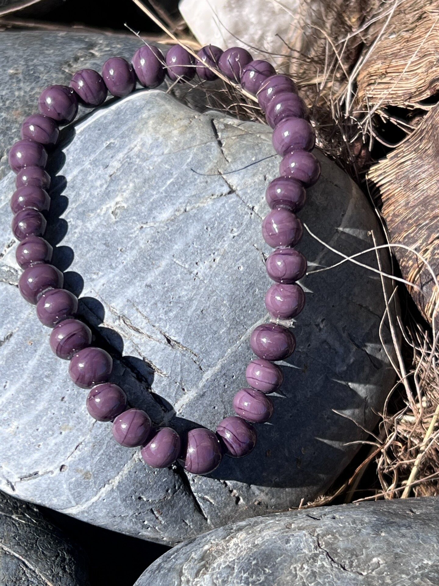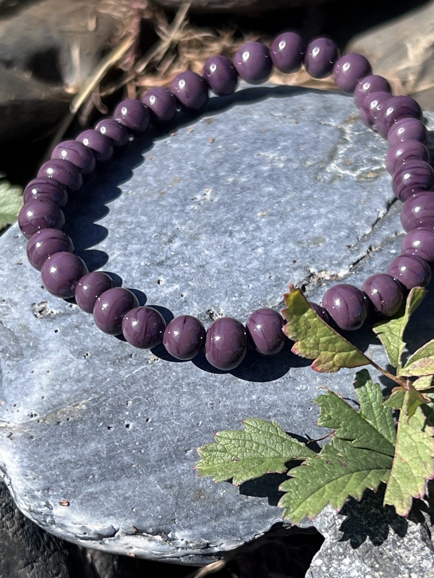 Bracelet en verre de Murano perles couleur violet prune clair