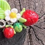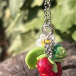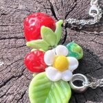 Pendentif en verre de Murano Fraise, petite fleur de fraise et feuille