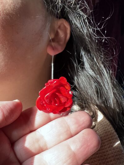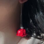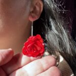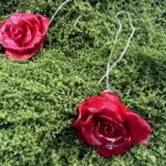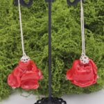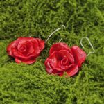 Boucles d’oreilles femme Rose rouge et ses gouttes de rosée du matin