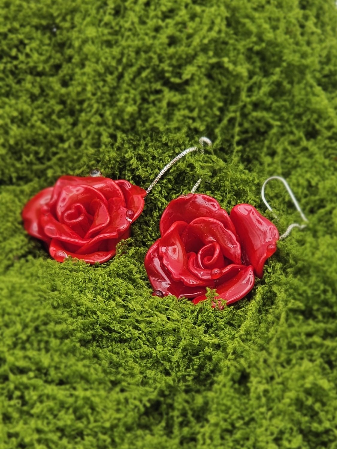 Une jolie paire de boucles d’oreilles composée d’une rose rouge avec ses gouttes de rosée du matin. Les boucles sont montées sur une chaine vénitienne de 45 mm en argent sterling 925. C’est dans mon atelier de Neuville-aux-Bois que j’ai fabriqué ces boucles d’oreilles femme en verre de Murano. Des boucles d’oreilles fraiches et colorées qui vous donneront un look printanier et complèteront égaiement votre tenue.