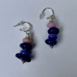 - Boucles d’oreilles perles de verre, couleur rose, lavande et parme