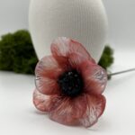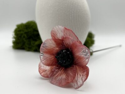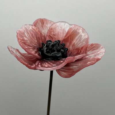Coquelicot en verre, rose mystique, à pétales, cœur noir avec picots