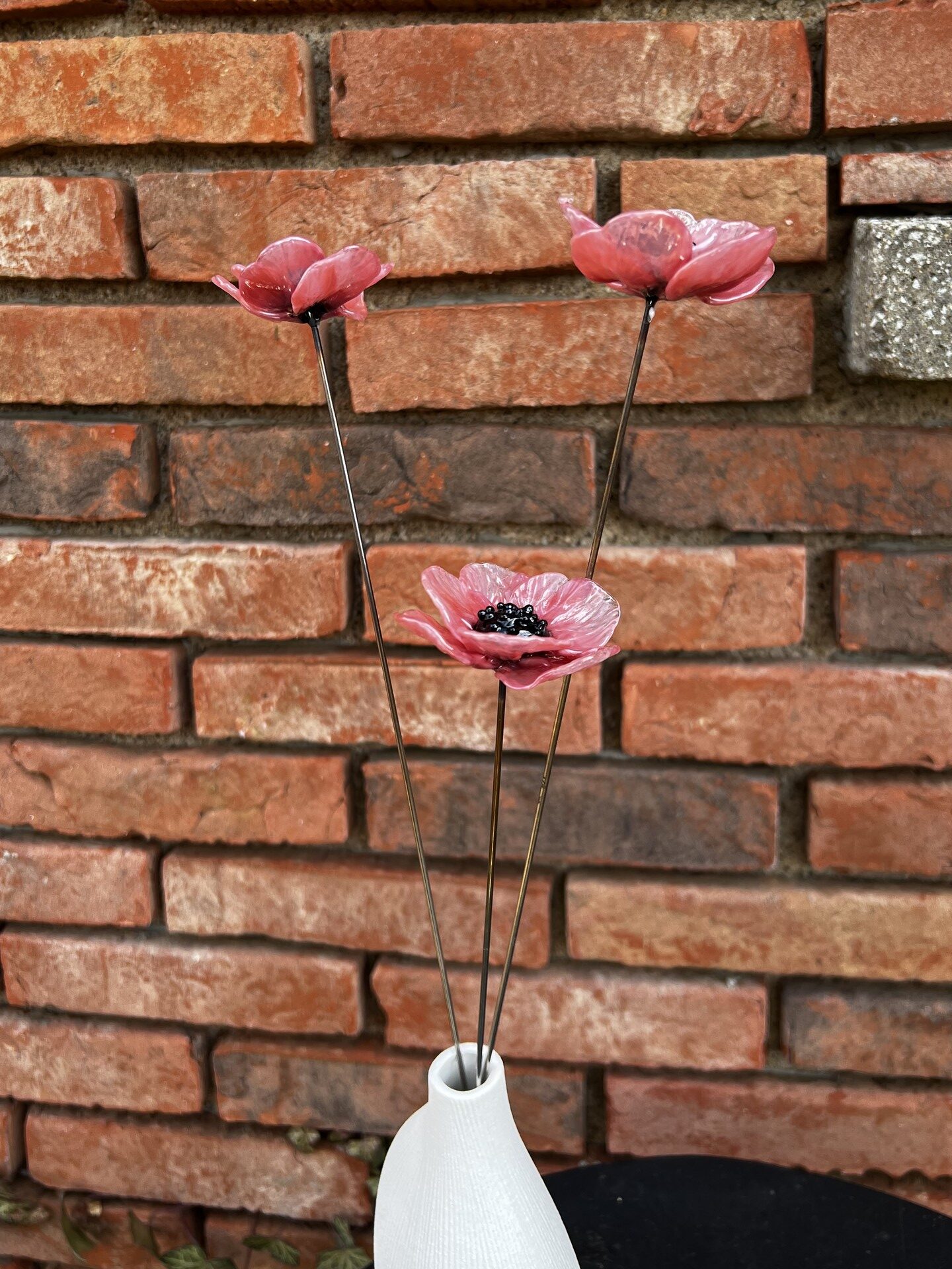 Un coquelicot fabriqué à la main dans mon atelier de Neuville-aux-Bois. Vif, moderne et élégant, ce coquelicot en verre, rose mystique, serti sur une tige en inox de 25, 30, 35 ou 40cm, apportera de la couleur et une note raffinée à votre intérieur. En pièce unique ou en bouquet : une jolie décoration en verre, un cadeau original.