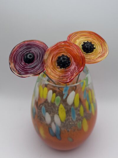 - Notez que contrairement aux fleurs en verre soufflé, qui sont creuses, les fleurs en verre filé sont en verre plein.