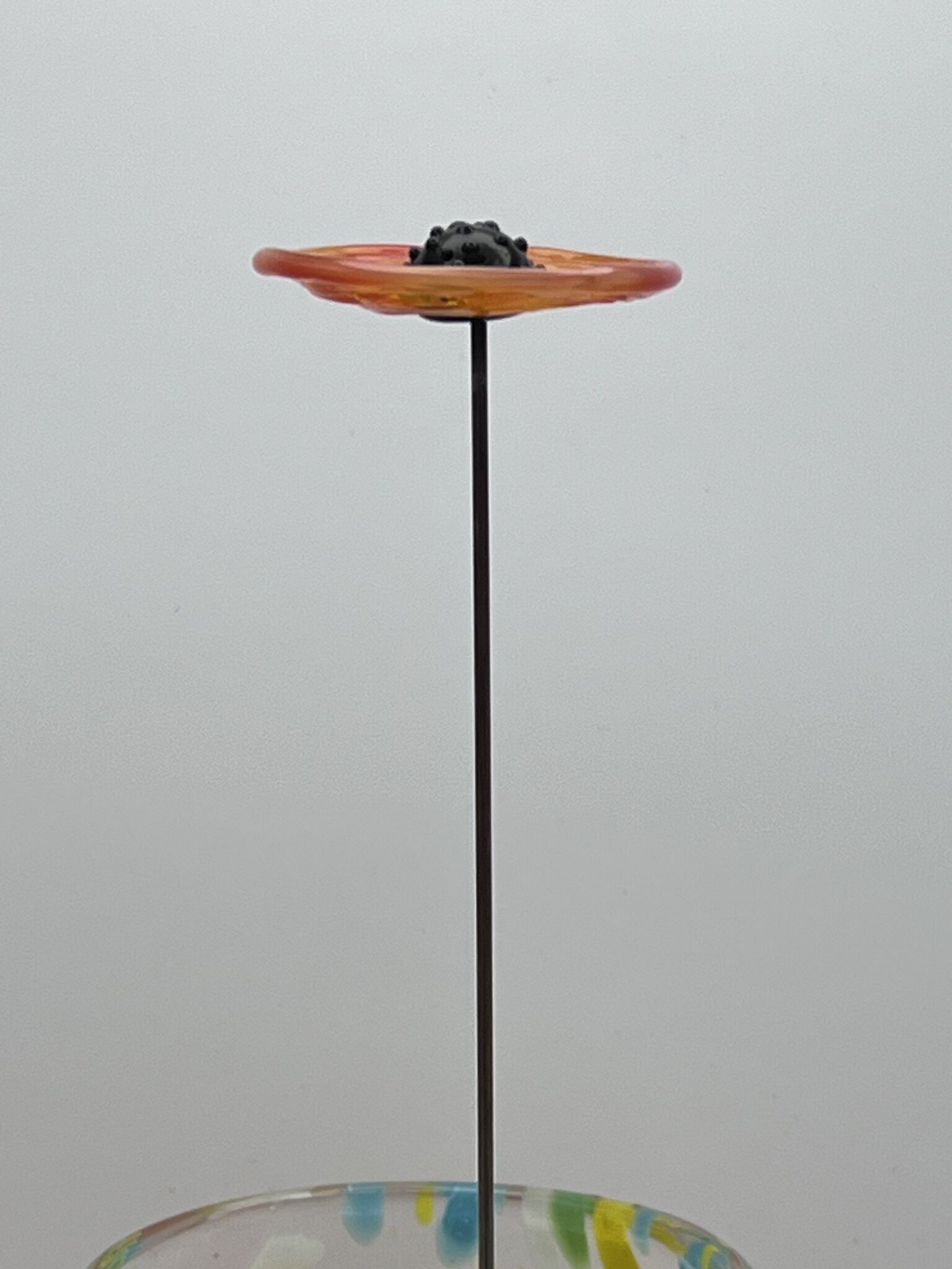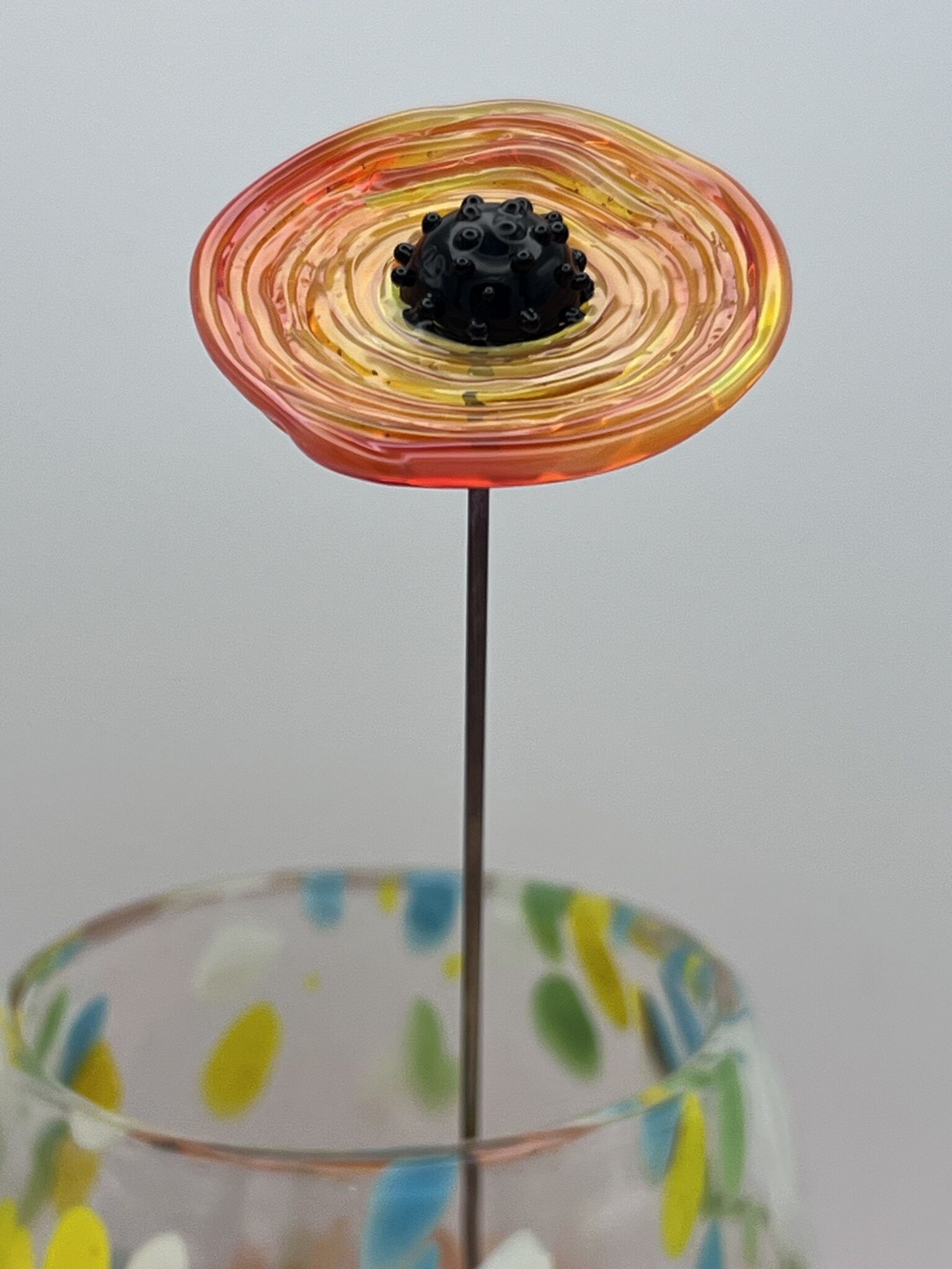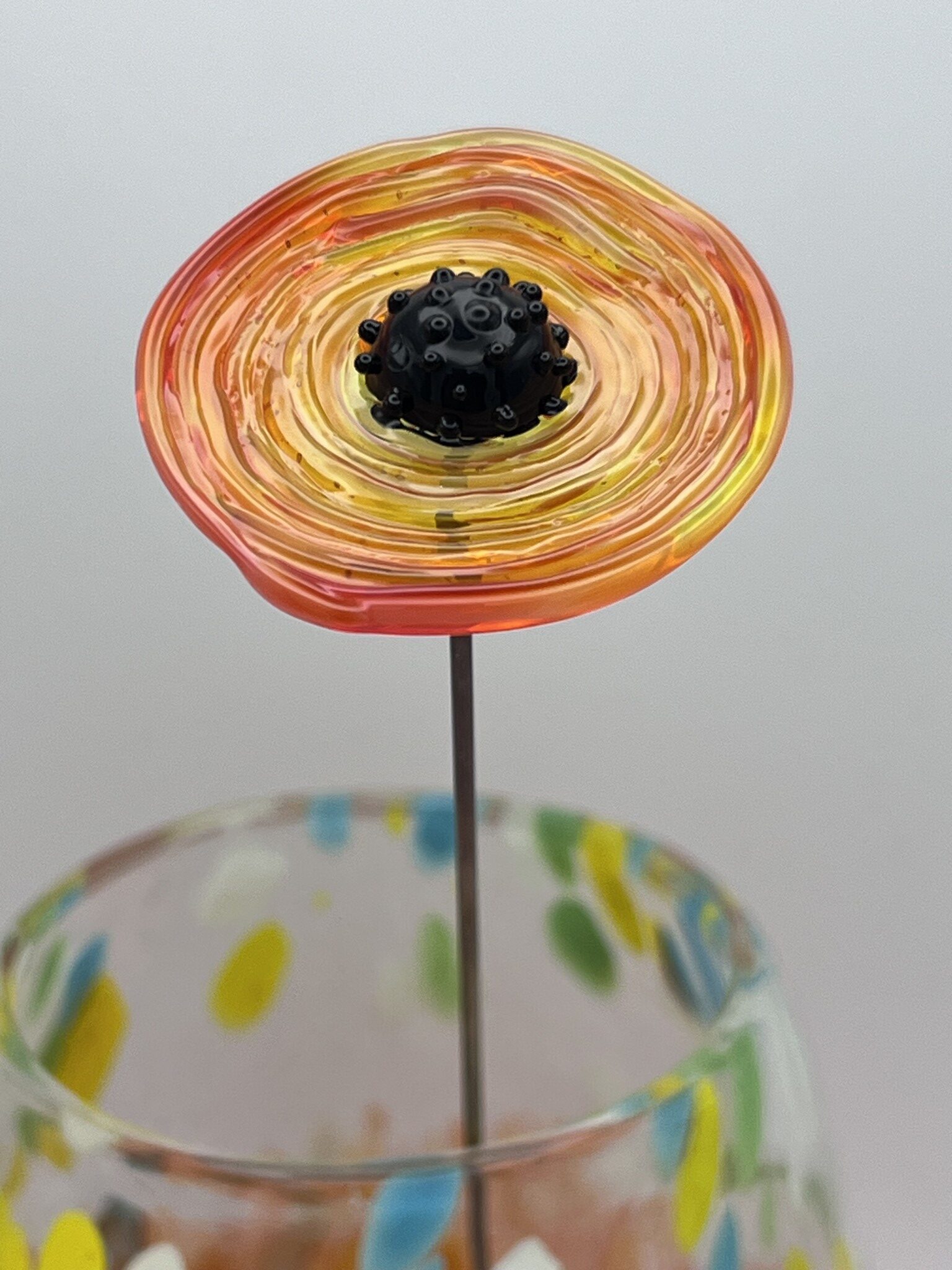 Coquelicot en verre jaune orangé transparent, cœur noir avec picots
