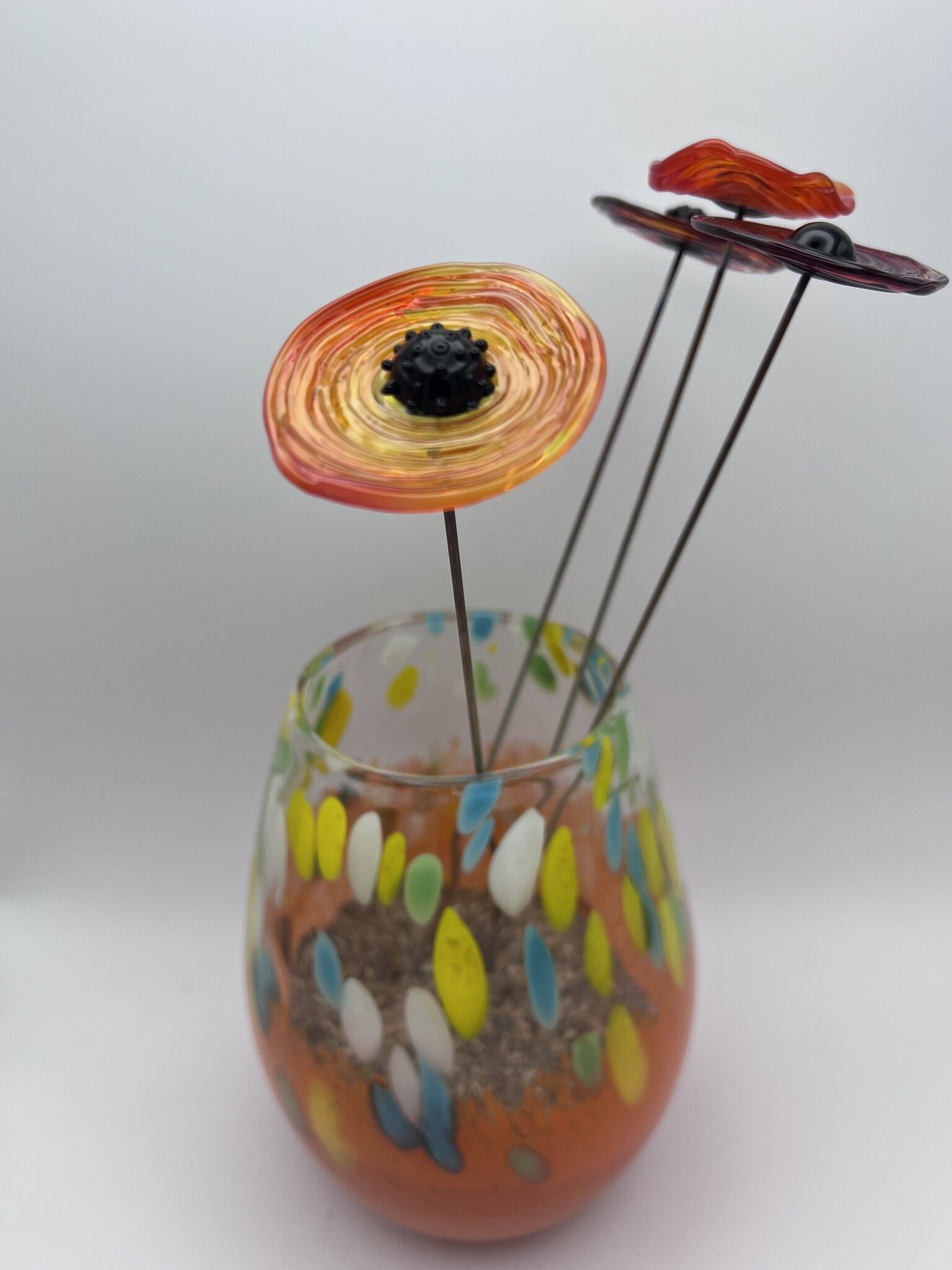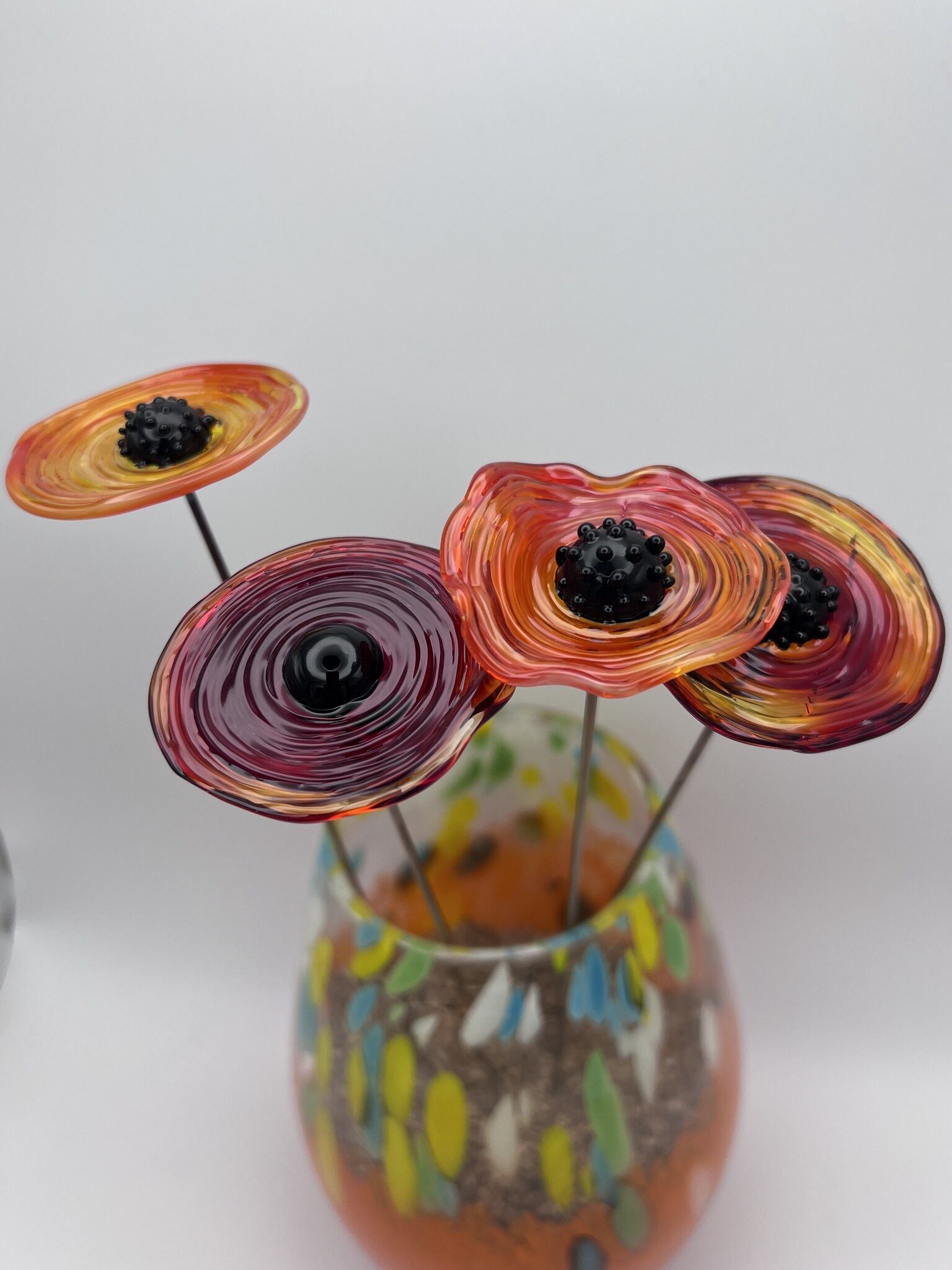 - Notez que contrairement aux fleurs en verre soufflé, qui sont creuses, les fleurs en verre filé sont en verre plein.