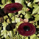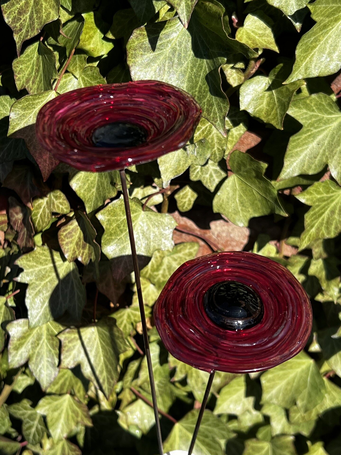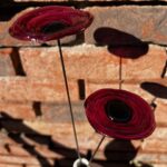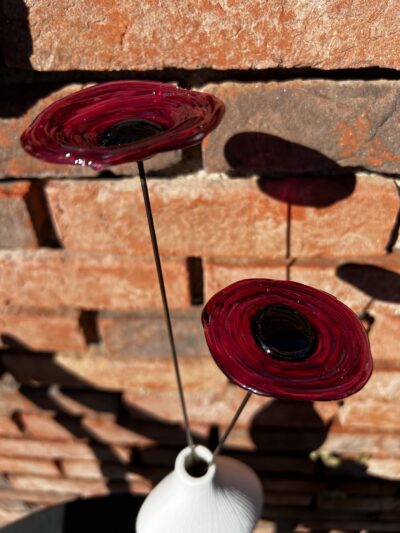 Coquelicots en verre filé, couleur rubis à l’Or foncé, cœur noir