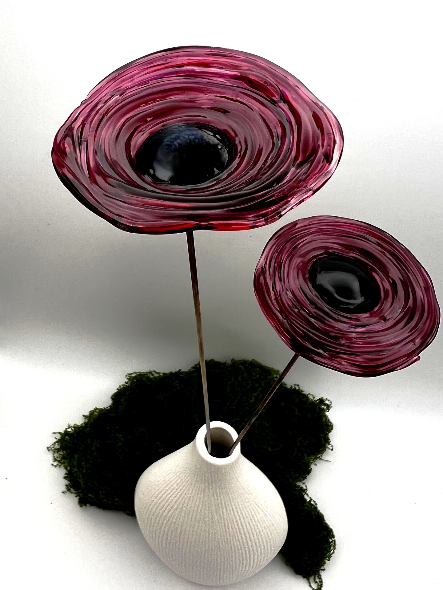 - Notez que contrairement aux fleurs en verre soufflé, qui sont creuses, les fleurs en verre filé sont en verre plein.
