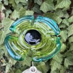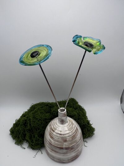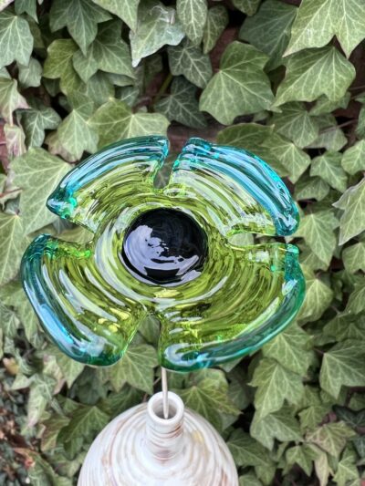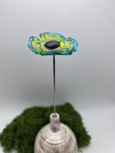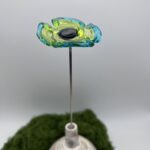Fleur en verre décoration : coquelicot vert tilleul et vert émeraude, cœur noir