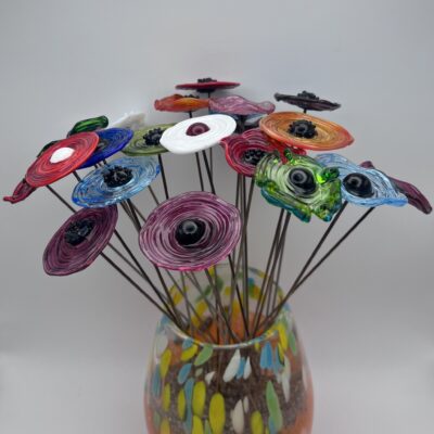 - Notez que contrairement aux fleurs en verre soufflé, qui sont creuses, les fleurs en verre filé sont en verre plein.