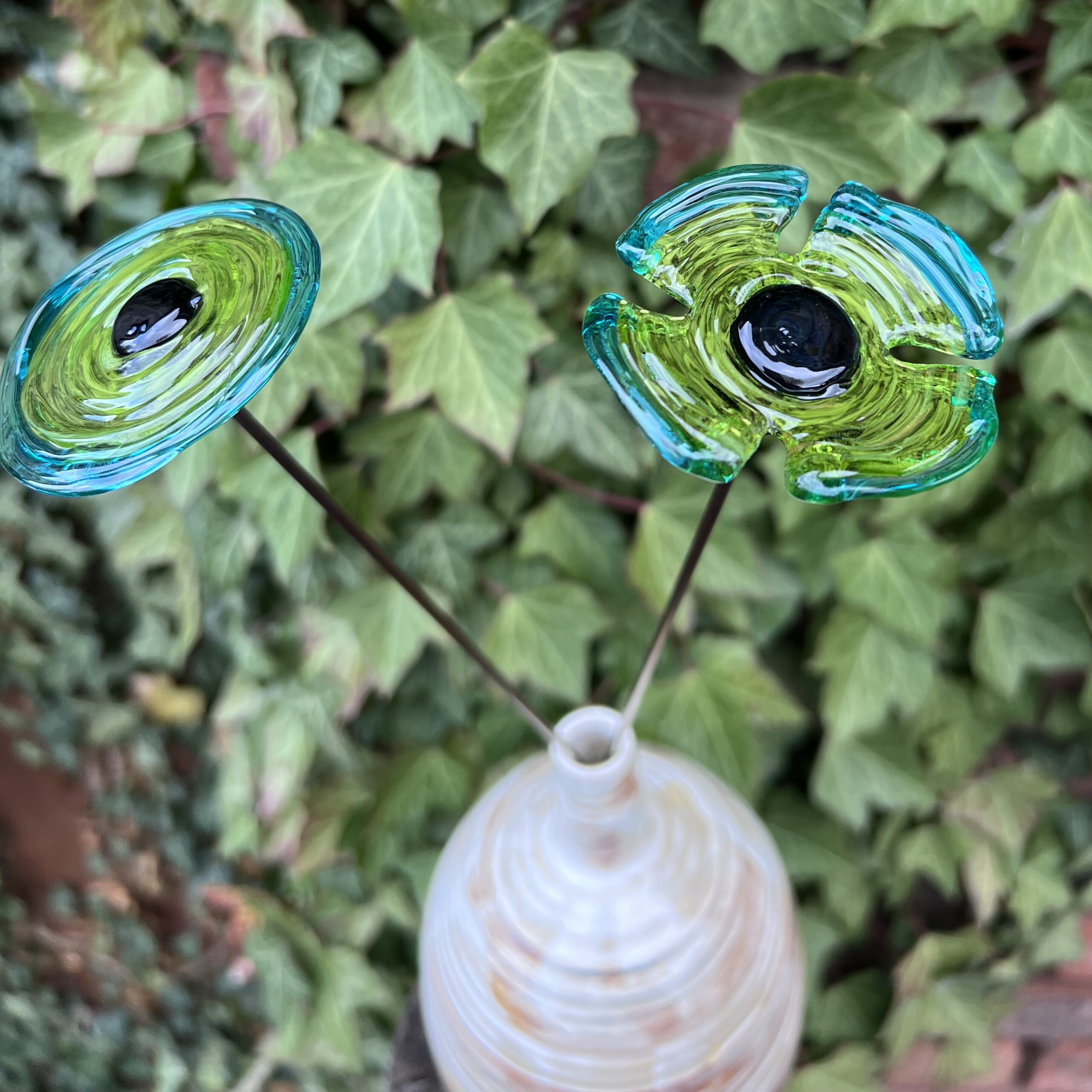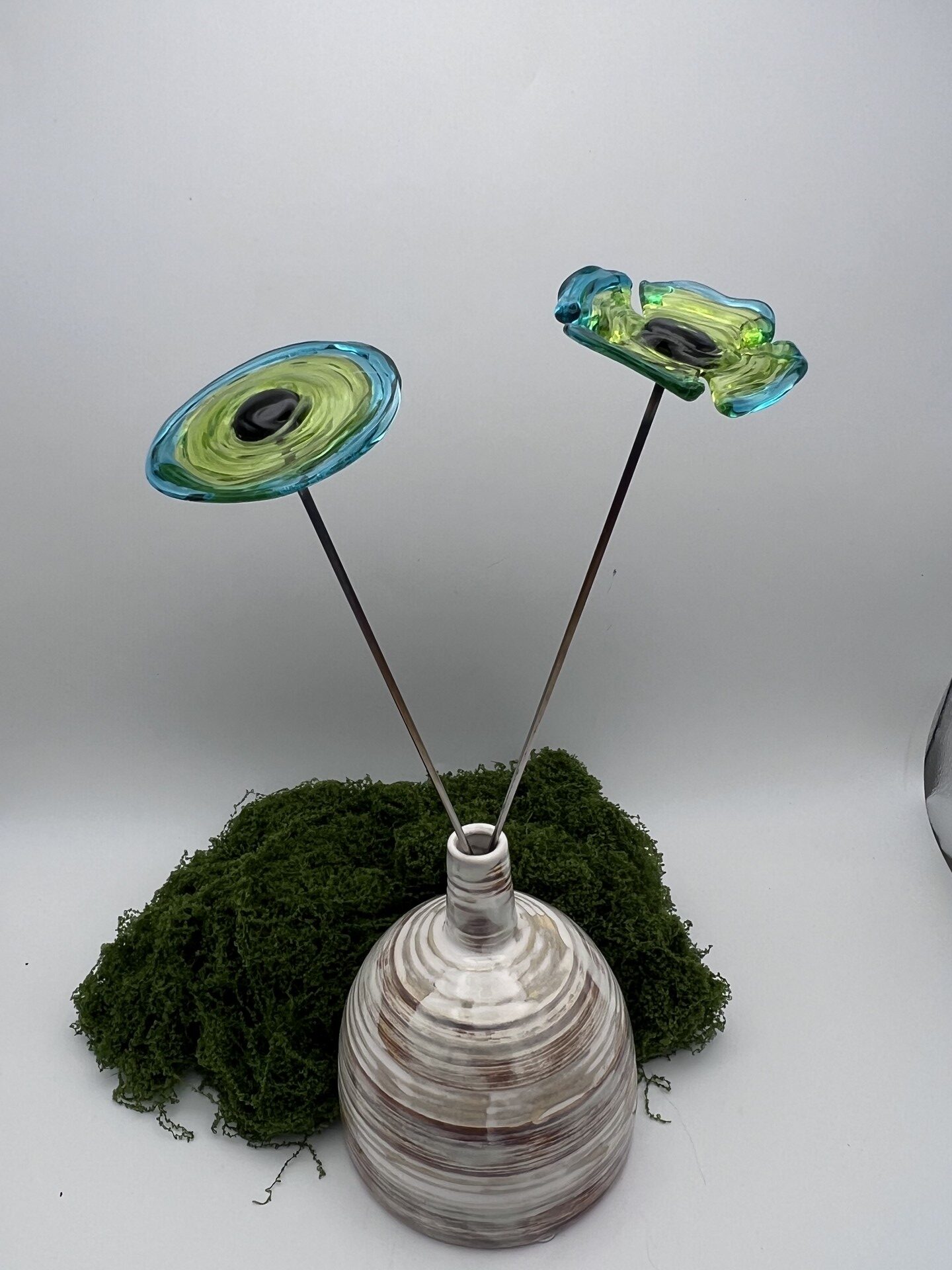 - Notez que contrairement aux fleurs en verre soufflé, qui sont creuses, les fleurs en verre filé sont en verre plein.