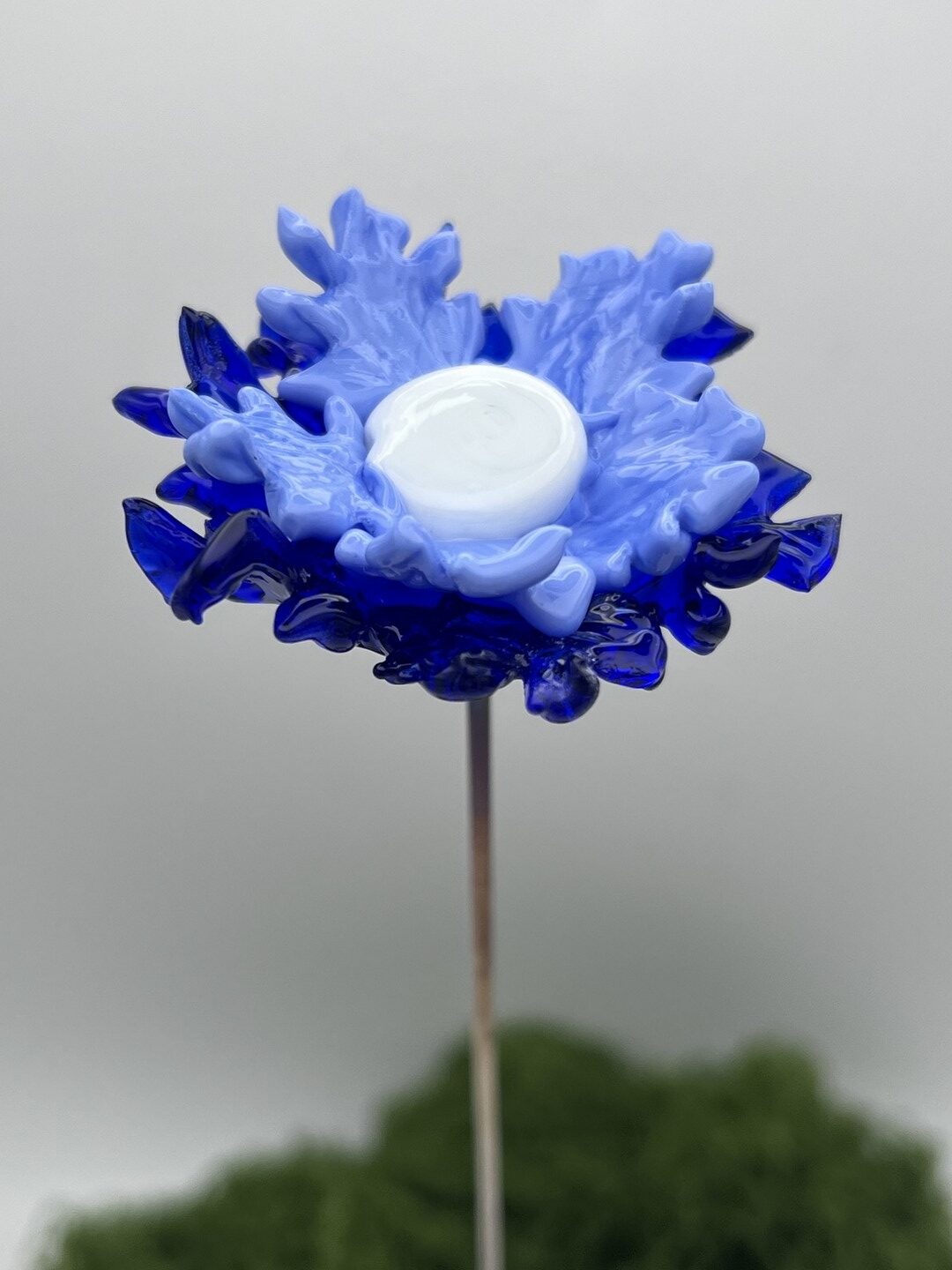 Un bleuet de France en verre de Murano fabriqué à la main dans mon atelier de Neuville-aux-Bois.