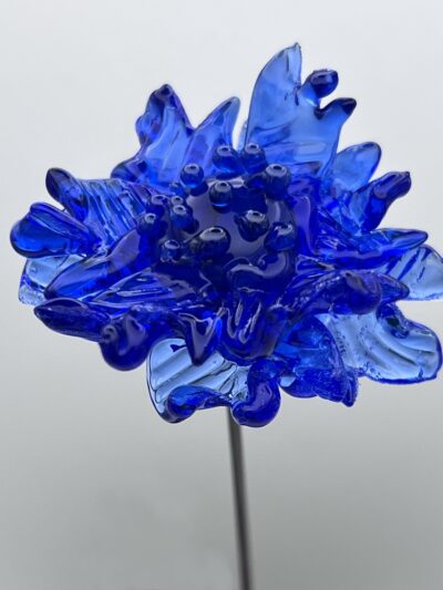 Une fleur fabriquée à la main sous la flamme de mon chalumeau dans mon atelier de Neuville-aux-Bois. Vif, moderne et élégant, ce bleuet en verre de Murano apportera de la couleur et une note raffinée à votre intérieur. En pièce unique ou en bouquet : une jolie décoration en verre, un cadeau déco original. Une fleur qui n’a pas besoin d’entretien et qui ne fanera jamais, elle aura juste besoin d’un petit coup de plumeau de temps en temps.