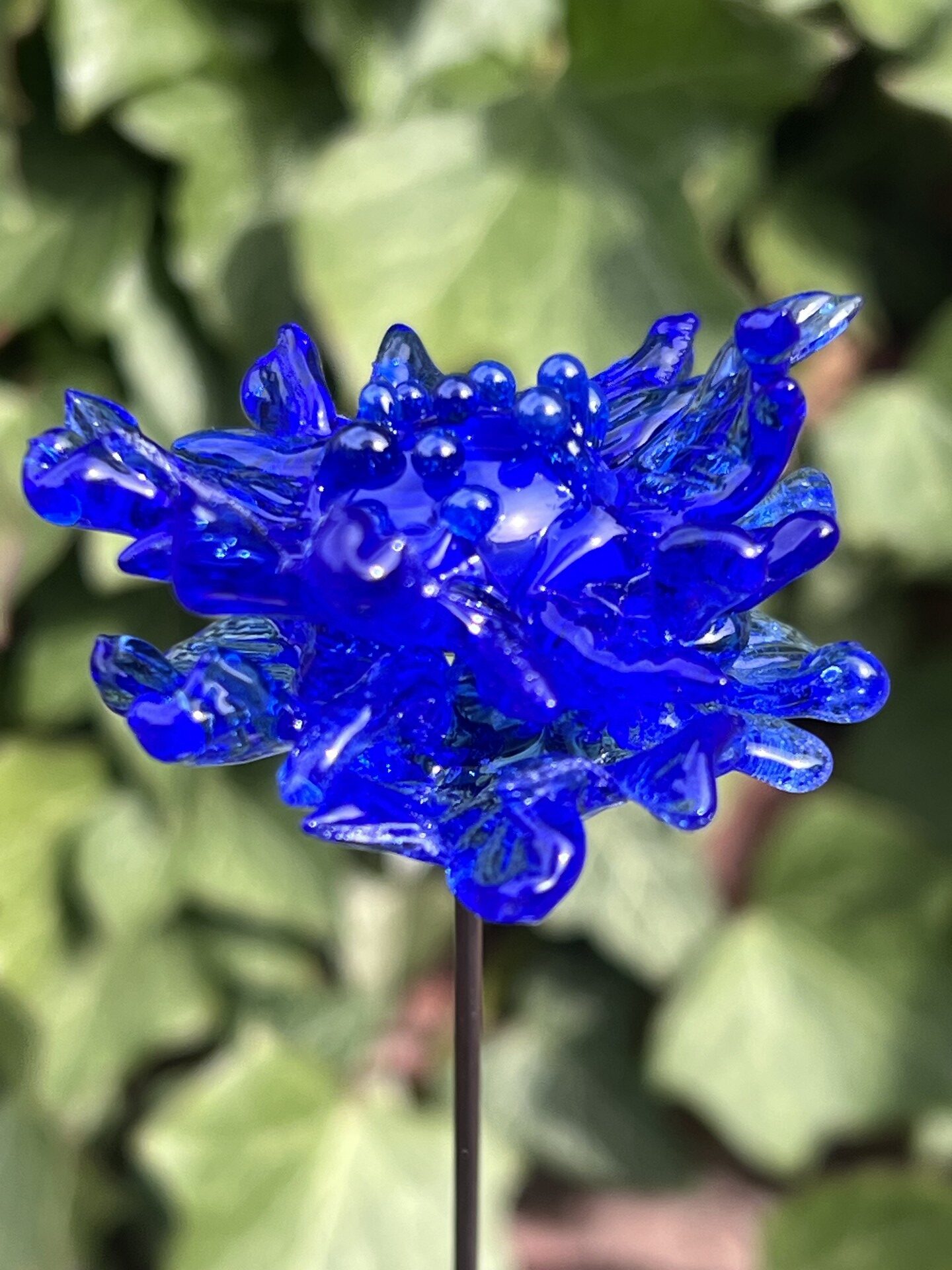 Une fleur fabriquée à la main sous la flamme de mon chalumeau dans mon atelier de Neuville-aux-Bois. Vif, moderne et élégant, ce bleuet en verre de Murano apportera de la couleur et une note raffinée à votre intérieur. En pièce unique ou en bouquet : une jolie décoration en verre, un cadeau déco original. Une fleur qui n’a pas besoin d’entretien et qui ne fanera jamais, elle aura juste besoin d’un petit coup de plumeau de temps en temps.