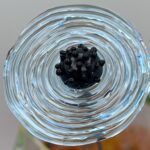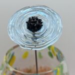 Coquelicot en verre bleu clair transparent, cœur noir avec picots