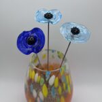 Accueil > Boutique > Fleurs > Coquelicots > Coquelicot en verre bleu clair transparent, cœur noir avec picots