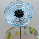 Coquelicot en verre bleu clair transparent, ondulé, cœur noir avec picots