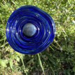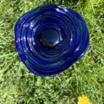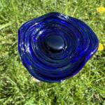 Fleur en verre : coquelicot ondulé, couleur bleu saphir, cœur noir