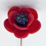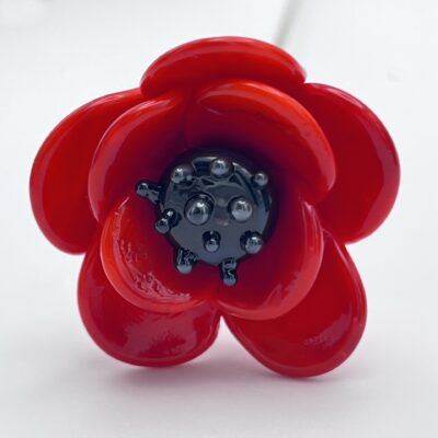 Fleur en verre coloré Coquelicot bleu ciel profond, cœur noir