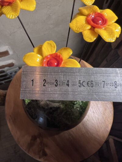 Bouquet de fleurs éternelles composé de 5 fleurs de Pavot et 4 Jonquilles en verre de Murano