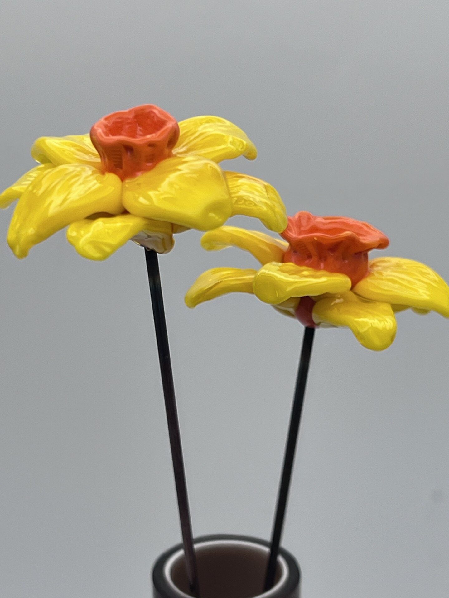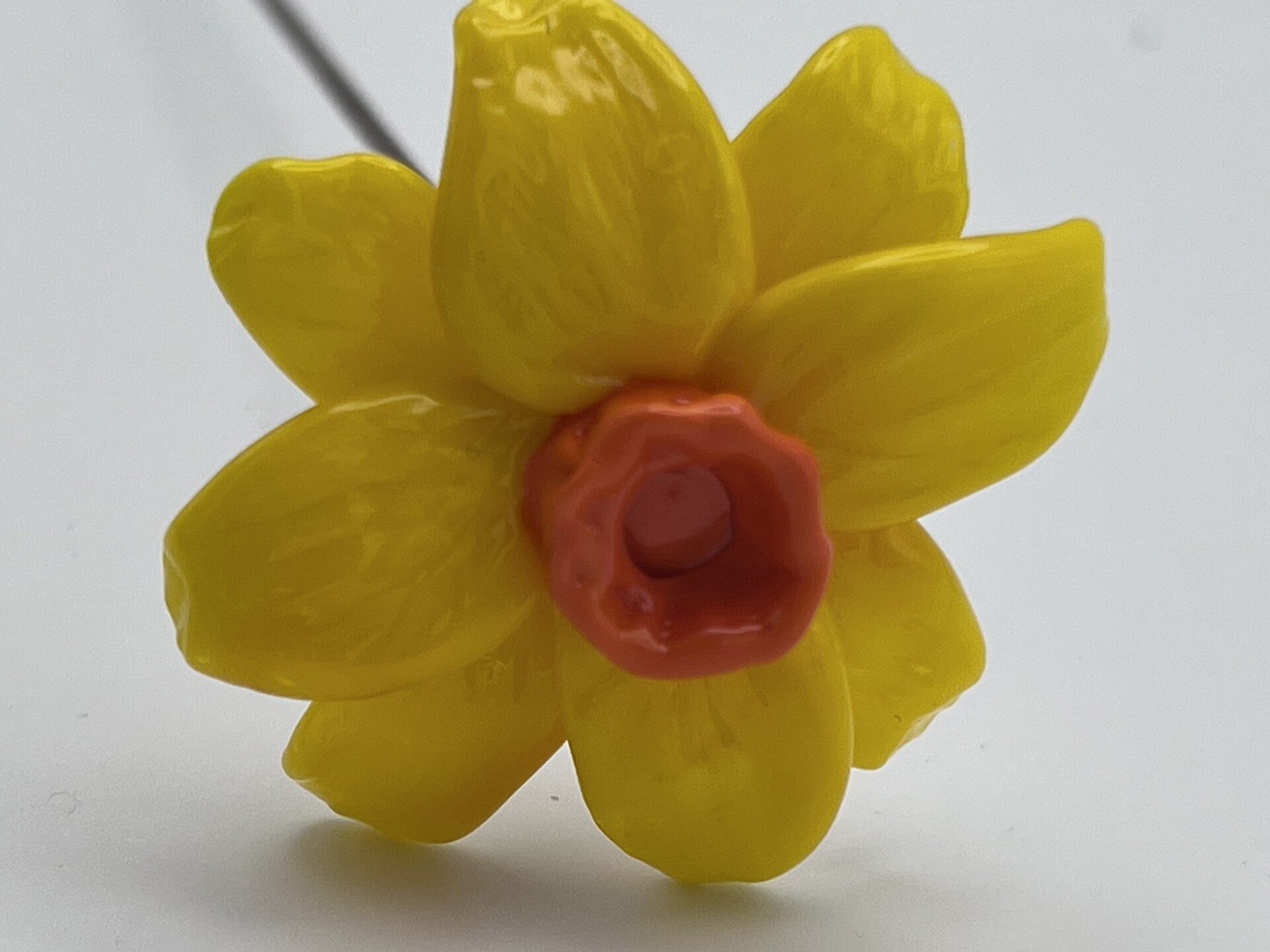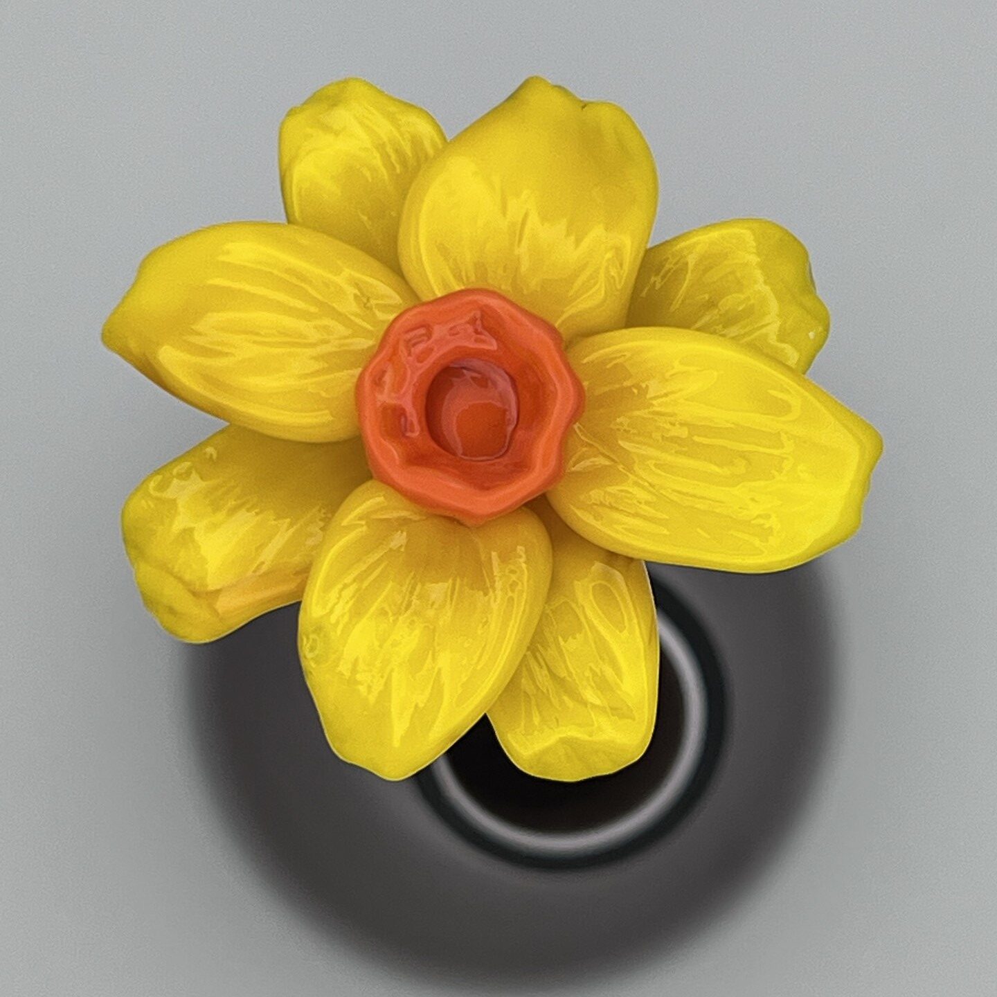 Une fleur fabriquée à la main et sous la flamme de mon chalumeau dans mon atelier de Neuville-aux-Bois. Cette jonquille en verre de Murano est éternelle, elle n’a pas besoin d’entretien et ne fanera jamais, juste besoin d’un petit coup de plumeau de temps en temps. Vives, modernes et élégantes, les fleurs en verre apportent de la couleur et une note raffinée à nos intérieurs. En pièce unique ou en bouquet : une jolie décoration en verre, un cadeau déco original.