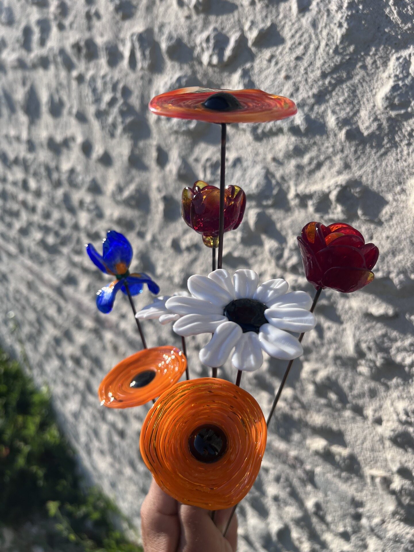 - Notez que contrairement aux fleurs en verre soufflé, qui sont creuses, les fleurs en verre filé sont en verre plein.