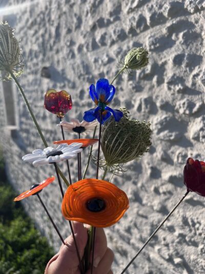 Suggestion : ajoutez à vos bouquets de fleurs en verre, des fleurs sauvages naturelles ou séchées, pour des bouquets encore plus merveilleux.