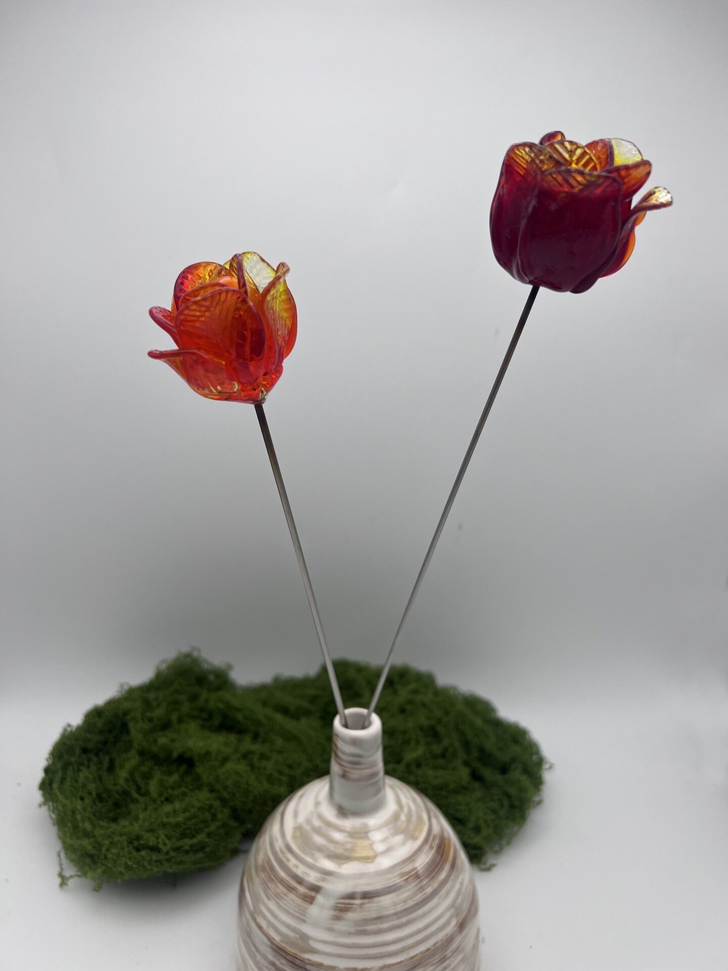 - Notez que contrairement aux fleurs en verre soufflé, qui sont creuses, les fleurs en verre filé sont en verre plein.