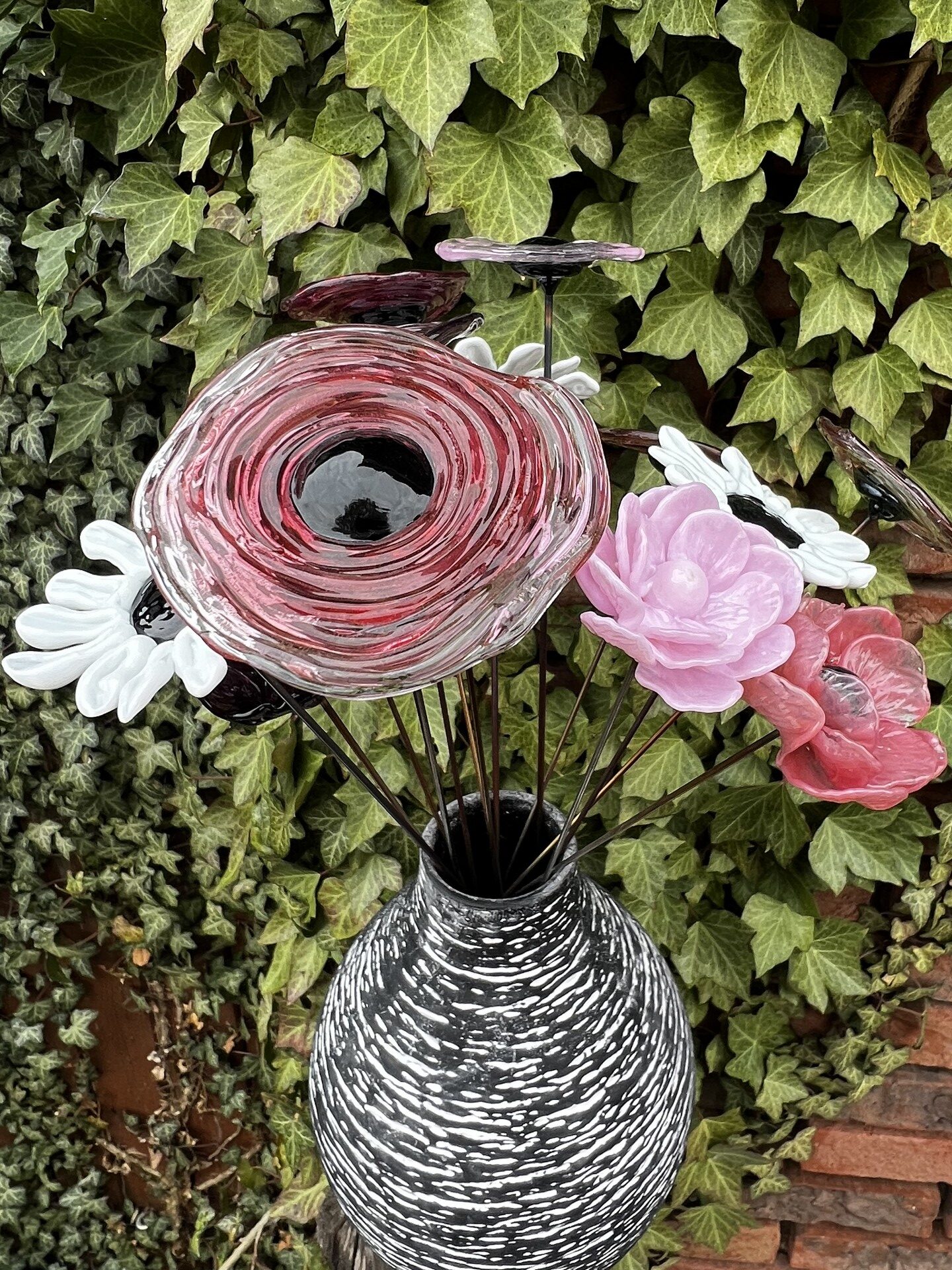 Suggestion de présentation pour ce bouquet de fleurs verre Murano et Borosilicate