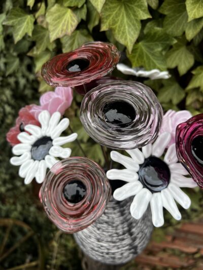 - Notez que contrairement aux fleurs en verre soufflé, qui sont creuses, les fleurs en verre filé sont en verre plein.