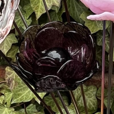 - 1 pivoine PIV006 en verre de Murano, couleur améthyste, cœur noir sans picots