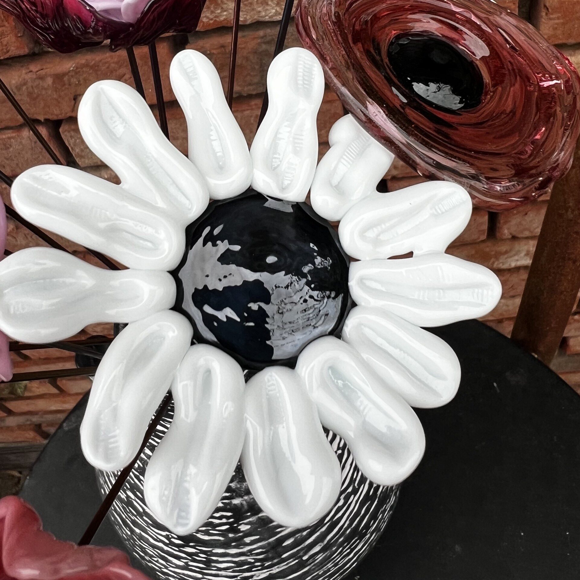 - 3 marguerites MARG002 en verre de Murano, pétales blanches, cœur noir