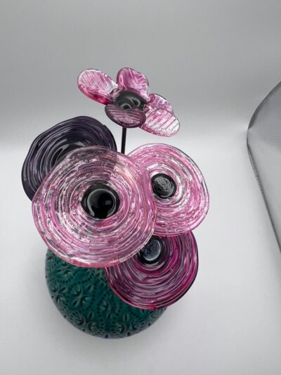 Accueil > Boutique > Fleurs > Coquelicots > Coquelicots en verre de Murano, ondulé, rose cœur noir