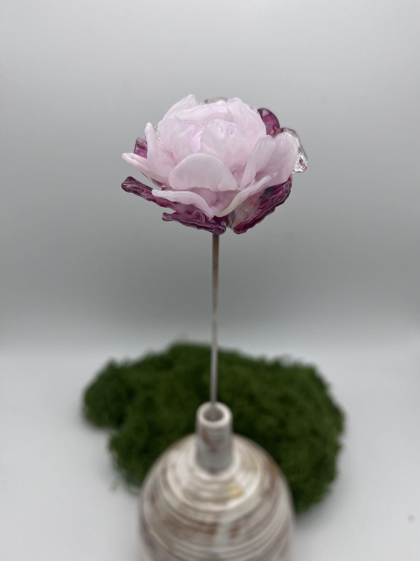 Conseils pour la présentation de cette pivoine en verre filé sur tige en inox
