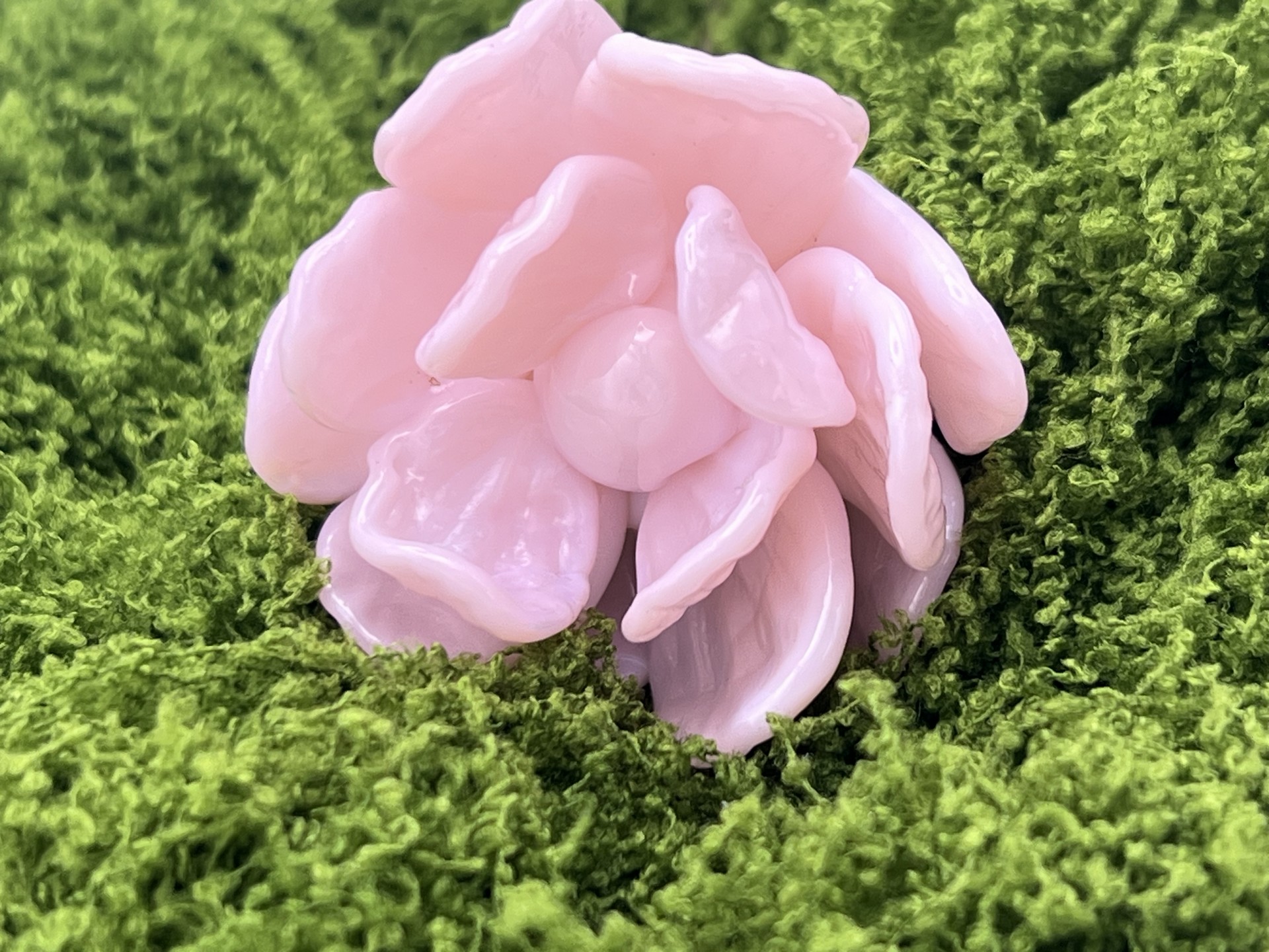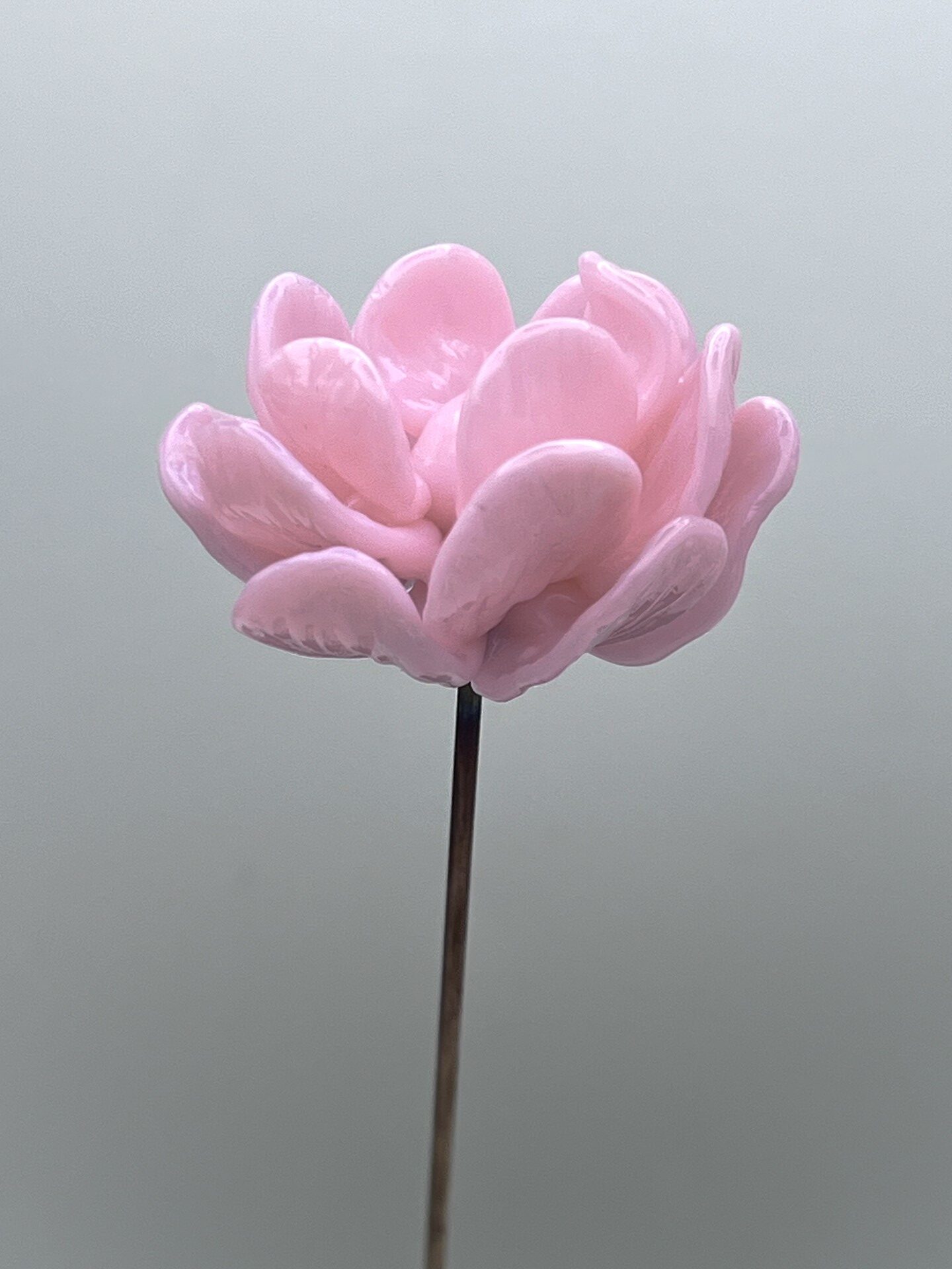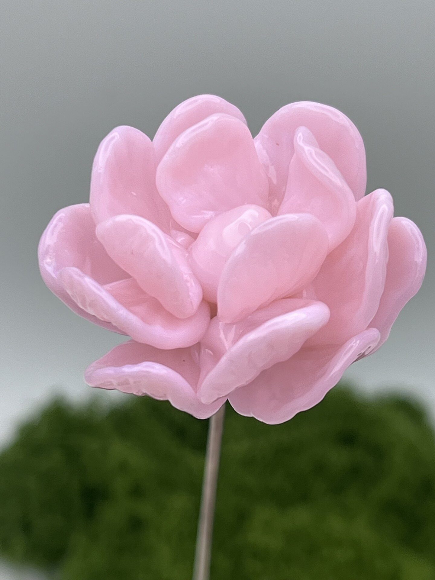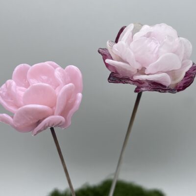 (*) Cette pivoine est en verre borosilicate car les baguettes de verre couleur rose laiteux n’existent pas en Murano