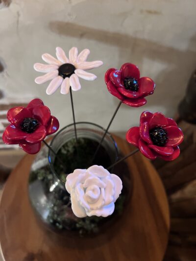 - Notez que contrairement aux fleurs en verre soufflé, qui sont creuses, les fleurs en verre filé sont en verre plein.