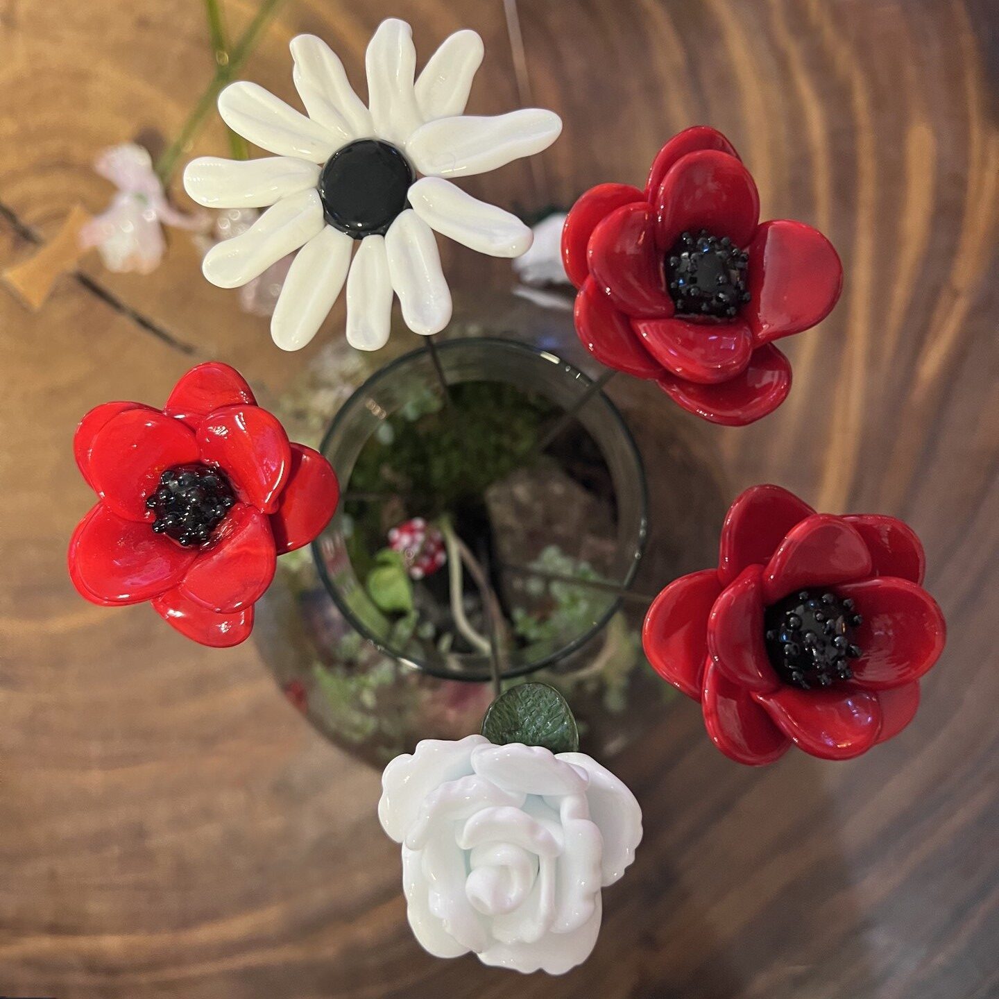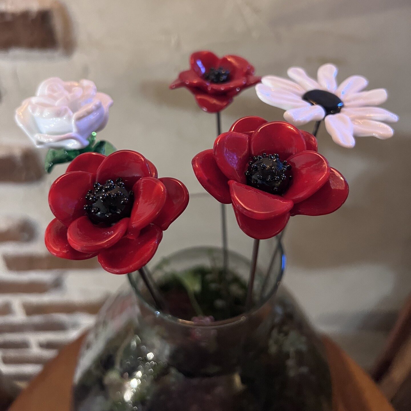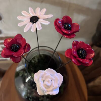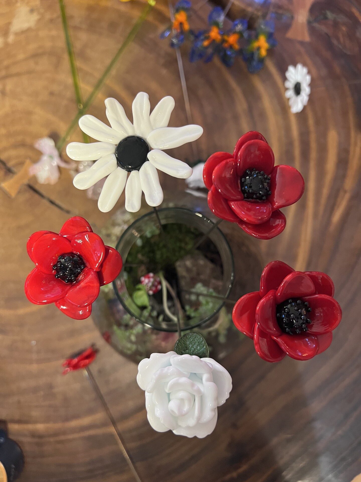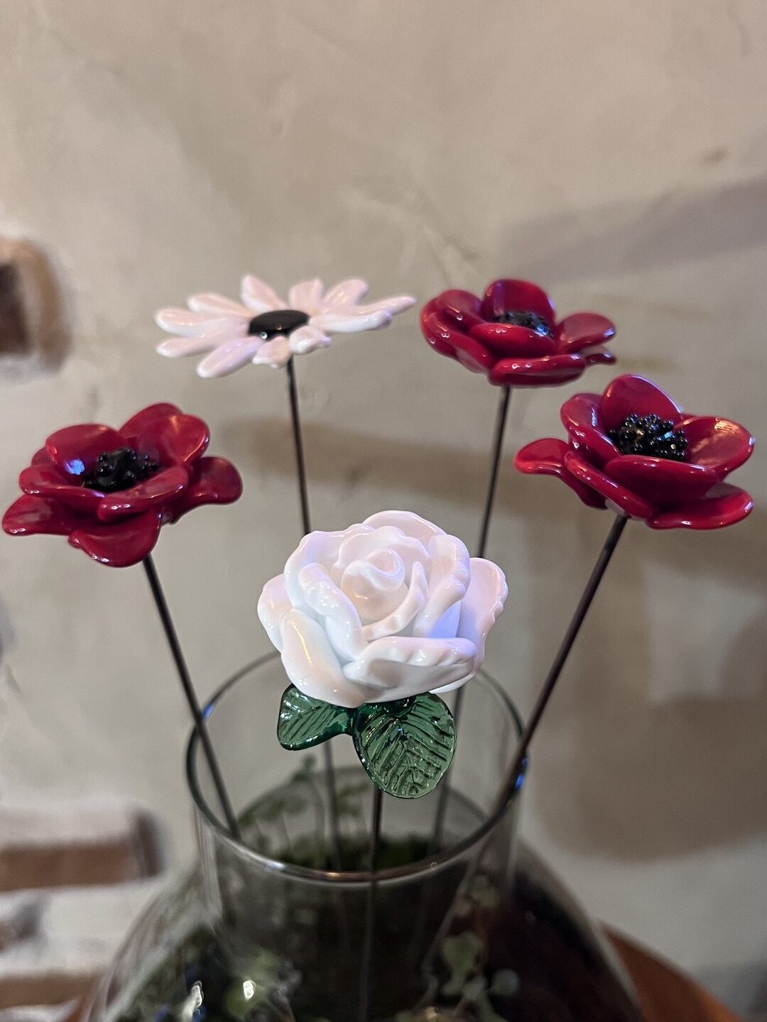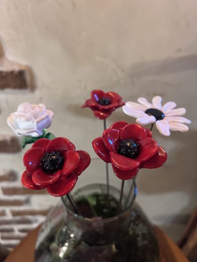 - Notez que contrairement aux fleurs en verre soufflé, qui sont creuses, les fleurs en verre filé sont en verre plein.