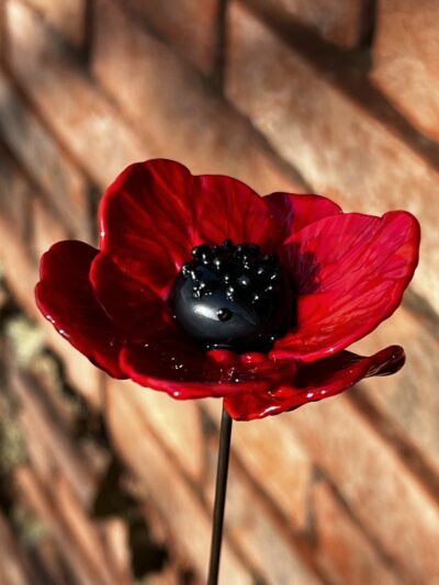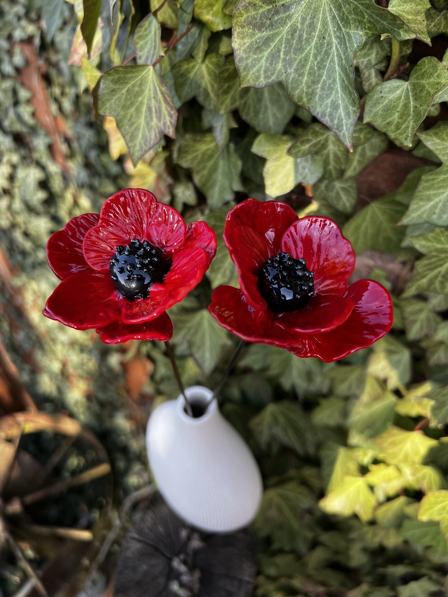 Coquelicots en verre filé, rouges vifs, cœur noir avec picots