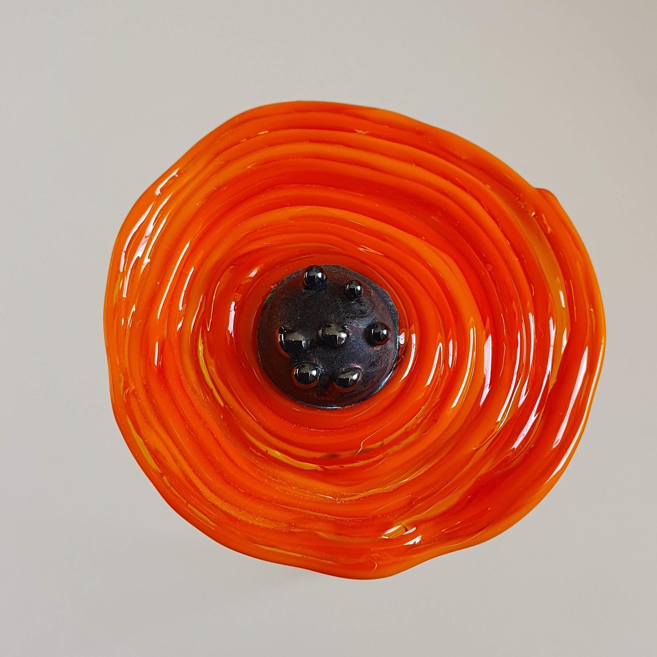 Fleur artificielle en verre : coquelicot rouge carotte, cœur noir avec picots