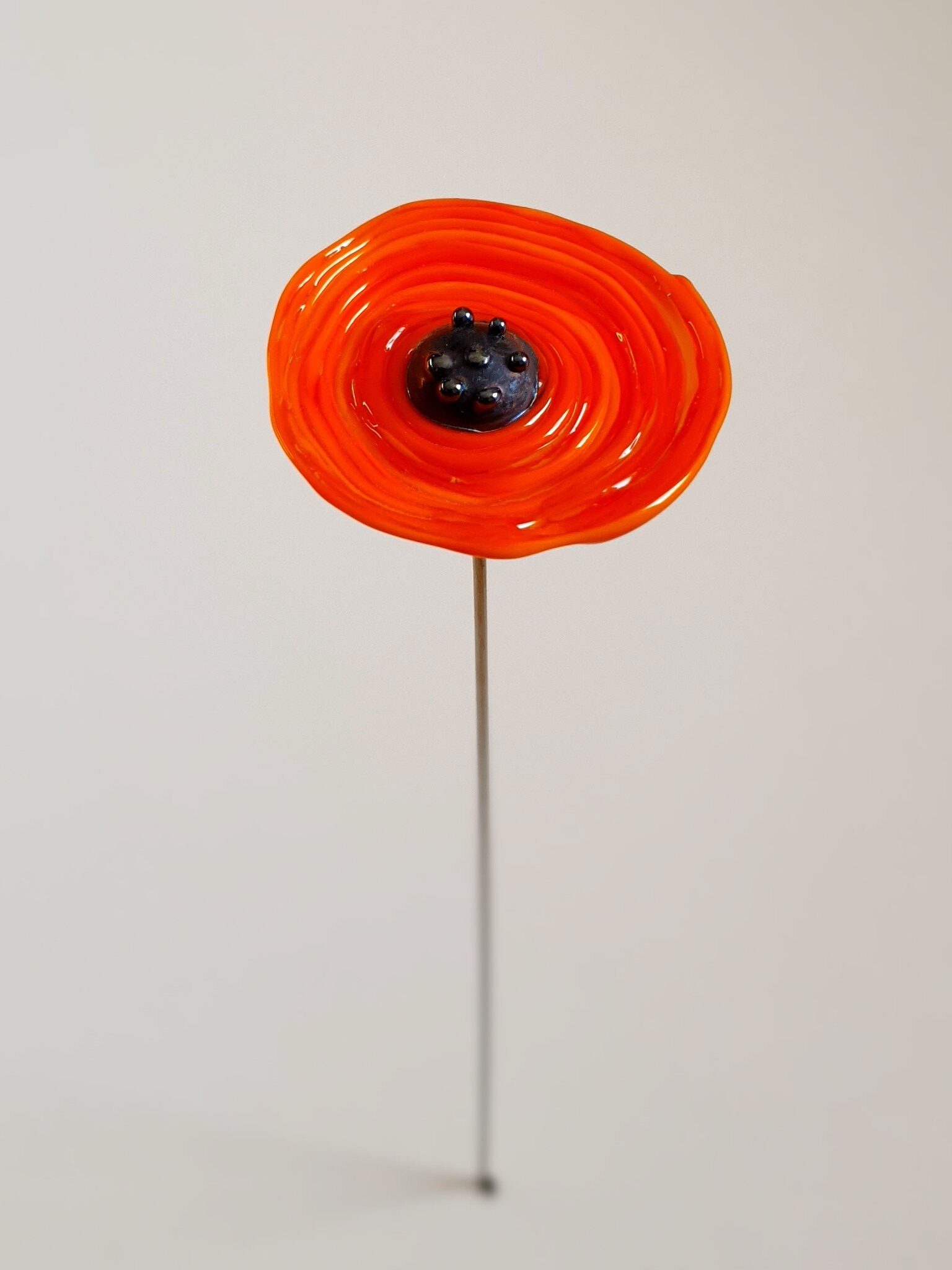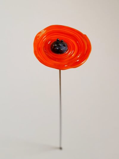 Un coquelicot en verre de Murano fabriqué à la main dans mon atelier de Neuville-aux-Bois près d’Orléans. Vives, modernes et élégantes, mes fleurs en verre apporteront de la couleur et une note raffinée à votre intérieur. En pièce unique ou en bouquet : une jolie décoration en verre, un cadeau original, une fleur artificielle en verre qui n’a pas besoin d’entretien et qui ne fanera jamais.