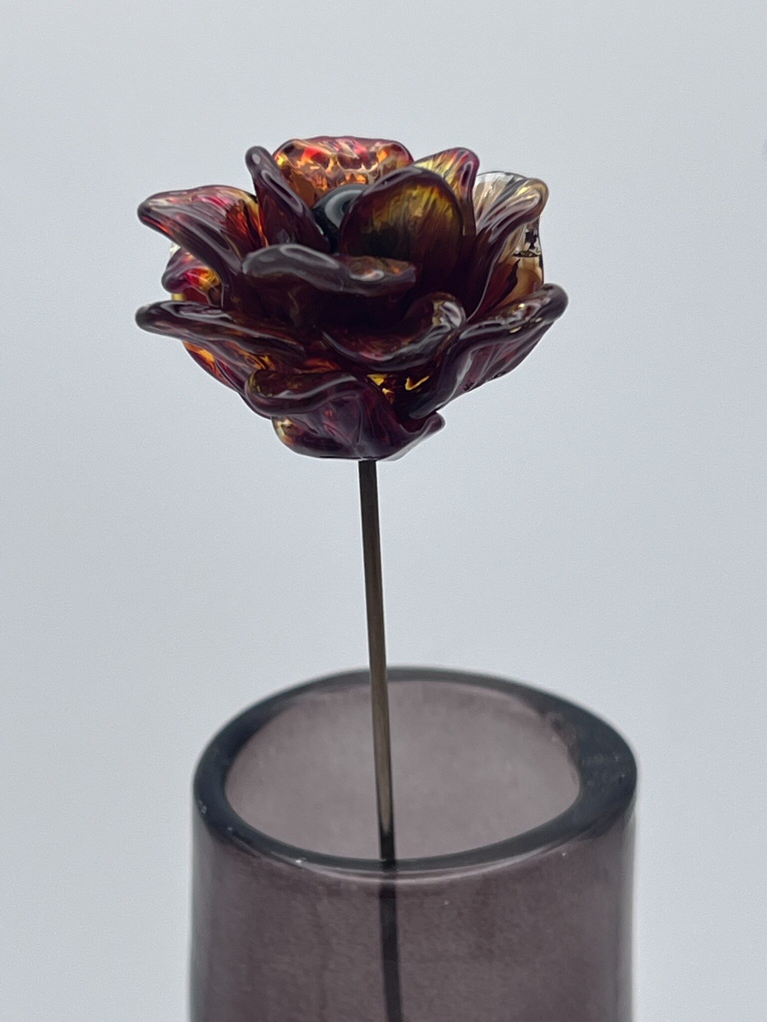 • Notez que contrairement aux fleurs en verre soufflé, qui sont creuses, les fleurs en verre filé sont en verre plein.
