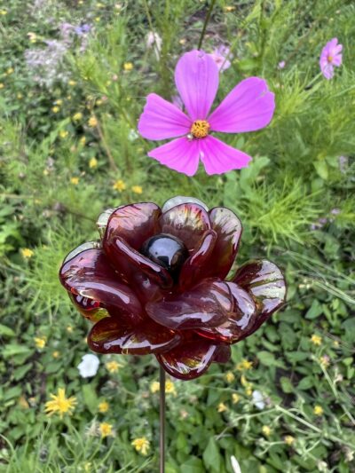 Une fleur en verre fabriquée à la main sous la flamme de mon chalumeau dans mon atelier de Neuville-aux-Bois. Cette pivoine en verre de Murano est éternelle et n’a pas besoin d’entretien, elle ne fanera jamais. Elle aura juste besoin d’un petit coup de plumeau de temps en temps. Vive, moderne et élégante, elle apportera de la couleur et une note raffinée à votre intérieur. En pièce unique ou en bouquet : une jolie décoration en verre, un cadeau déco original.