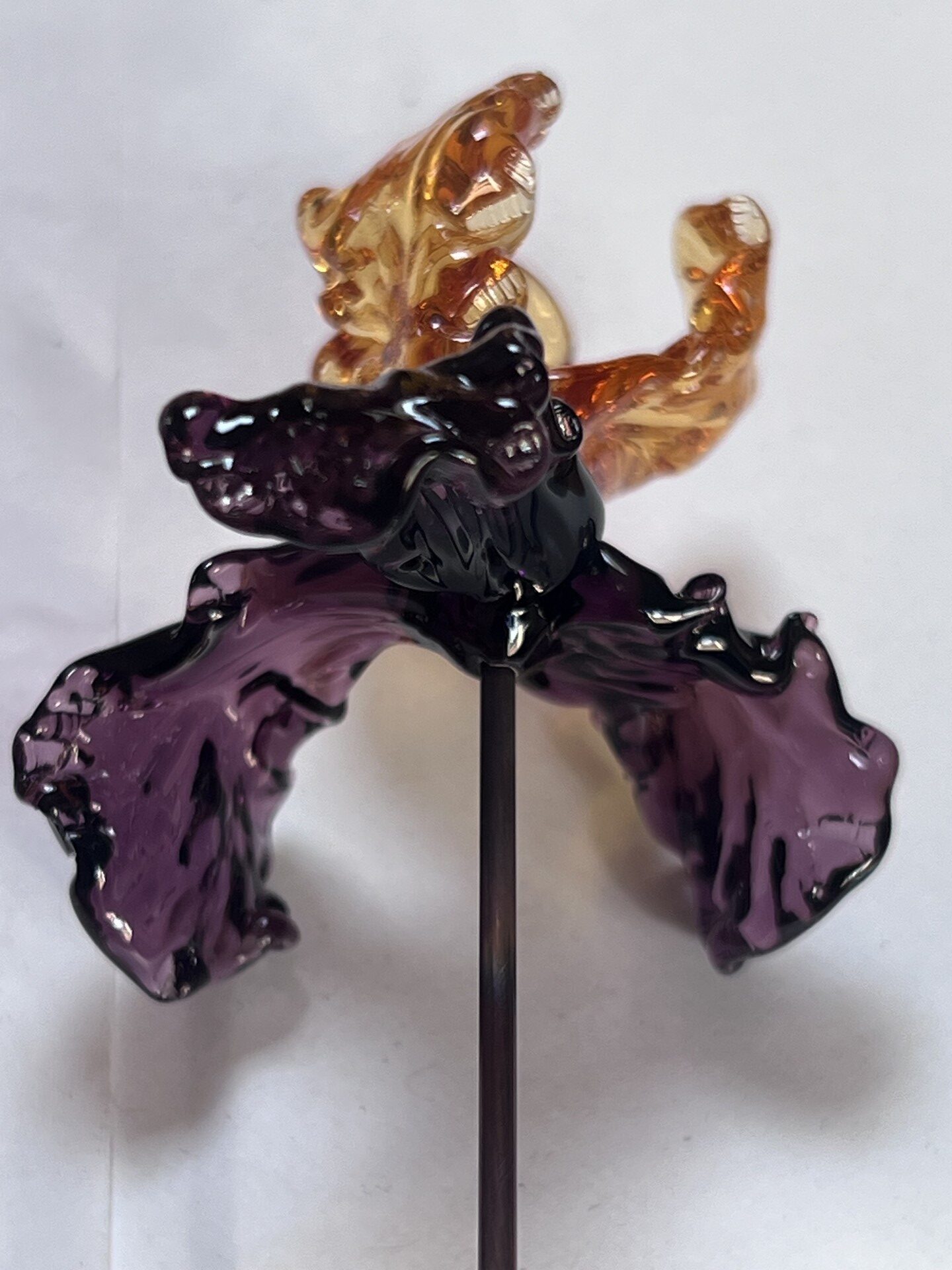 Belle fleur d’iris violet glycine foncé et topaze impériale, sur tige en inox