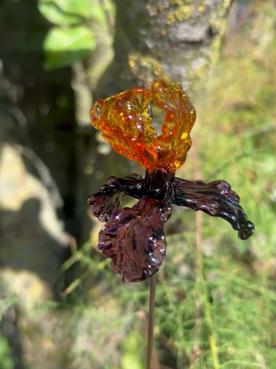 Avec ses couleurs irisées et ses formes complexes, l’iris est l’une des plus belles fleurs du monde. Vive et élégante, cette belle fleur d’iris, fabriquée à la main et sous la flamme de mon chalumeau dans mon atelier de Neuville-aux-Bois, apportera de la couleur et une note raffinée à votre intérieur. Une fleur qui n’a pas besoin d’entretien et qui ne fanera jamais. En pièce unique ou en bouquet : une jolie décoration en verre, un cadeau original.