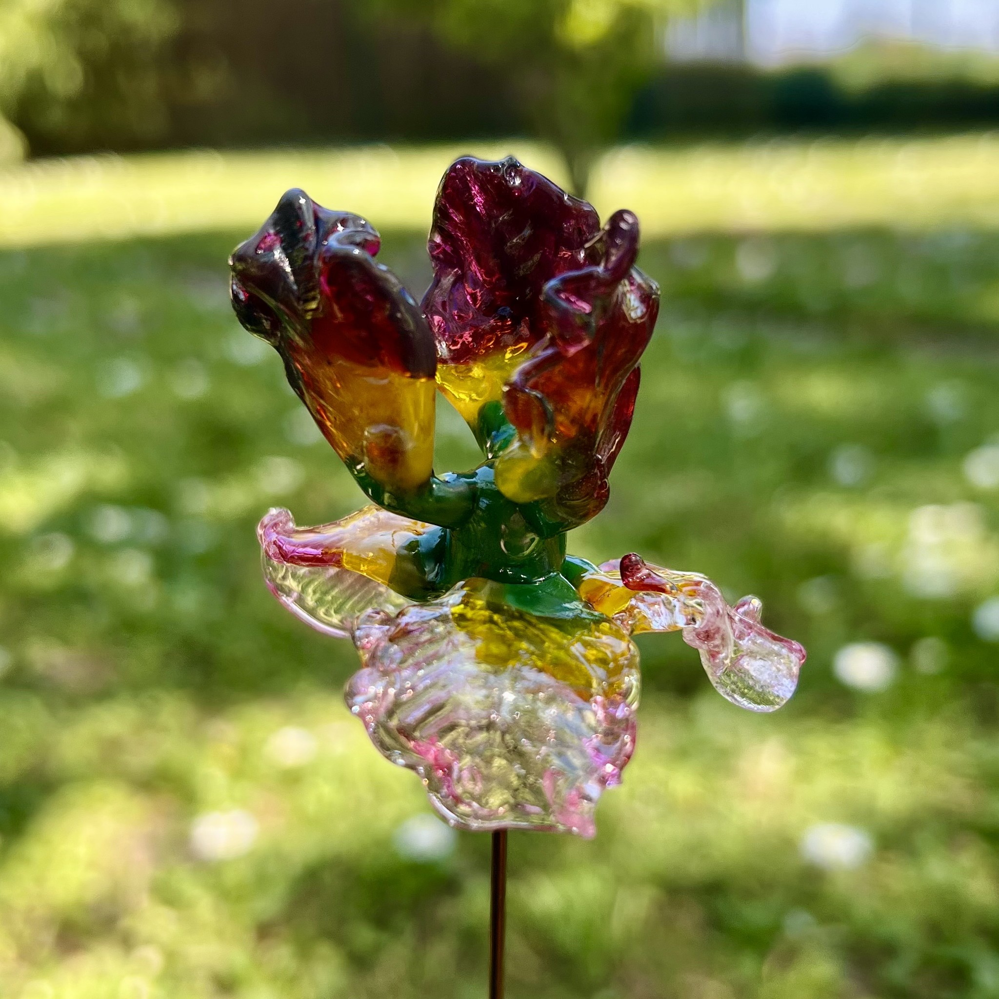 Un cadeau fleur original fabriqué à la main dans mon atelier de Neuville-aux-Bois dans le Loiret. Réalisé avec du verre de Murano, c’est une fleur éternelle qui n’a pas besoin d’entretien et qui ne fanera jamais ! En pièce unique ou en bouquet : une jolie décoration en verre, un cadeau fleur original. Cet Iris en verre filé apportera de la couleur et une note raffinée à votre intérieur.