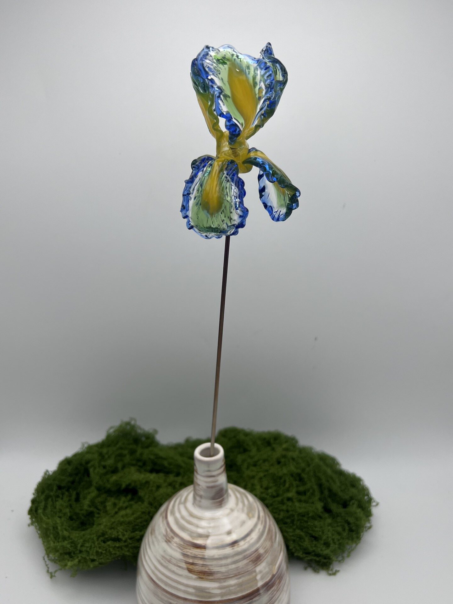 Avec ses couleurs irisées et ses formes complexes, l’iris est l’une des plus belles fleurs du monde. Noble et élégant, cet iris en verre borosilicate, fabriqué à la main dans mon atelier de Neuville-aux-Bois dans le Loiret, apportera de la couleur et une note raffinée à votre intérieur. Des fleurs en verre sur tige qui n’ont pas besoin d’entretien, elles ne faneront jamais. En pièce unique ou en bouquet : une jolie décoration en verre, un cadeau original.