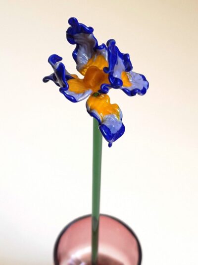 Avec ses couleurs irisées et ses formes complexes, l’iris est l’une des plus belles fleurs du monde. Noble et élégant, cet iris en verre filé, fabriqué à la main dans mon atelier de Neuville-aux-Bois dans le Loiret, apportera de la couleur et une note raffinée à votre intérieur. Réalisée avec du verre de Murano, c’est une fleur éternelle qui n’a pas besoin d’entretien et qui ne fanera jamais ! En pièce unique ou en bouquet : une jolie décoration en verre, un cadeau original.
