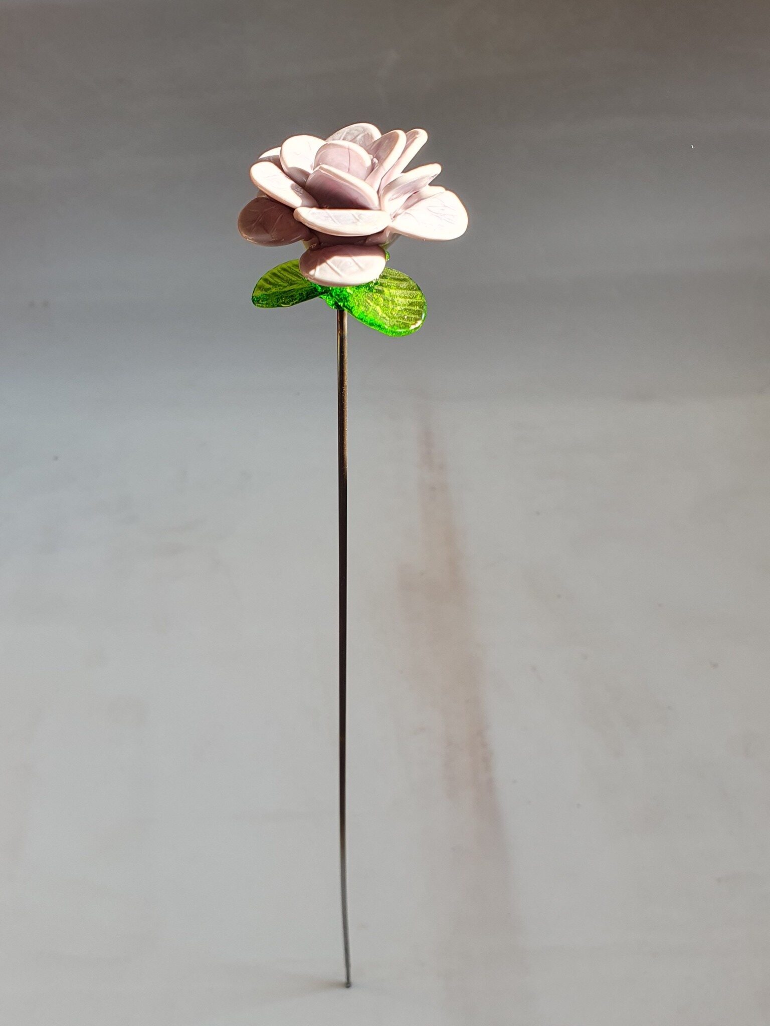 Rose artificielle: une rose en verre de Murano couleur parme, sur tige en inox